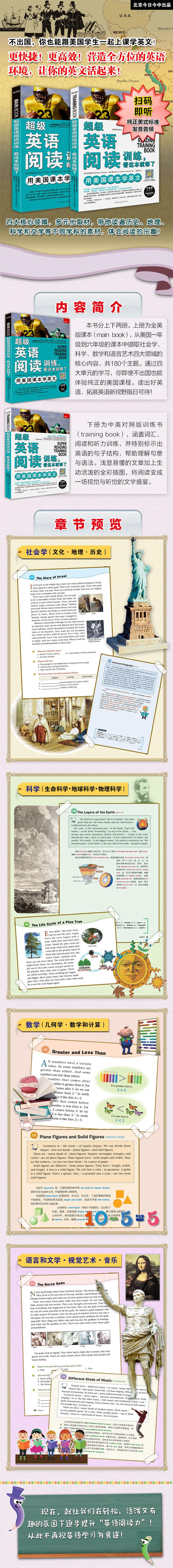 Extrayendo el contenido central de los cuatro campos principales de sociología, ciencia, matemáticas y artes del lenguaje de los libros de texto estadounidenses de primero a sexto grado, hay un total de 180 temas, que cubren el conocimiento básico de varias disciplinas. Lee en voz alta buen inglés, expande等