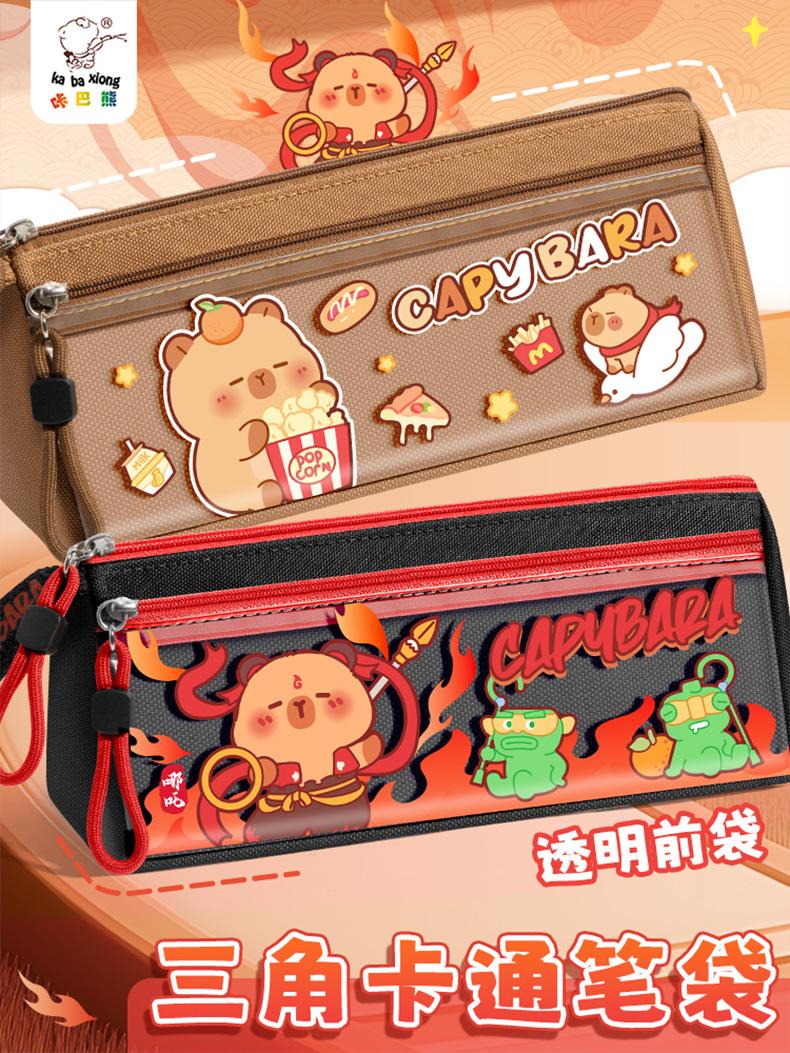 Estuche de Lápices Creativo de Dibujos Animados de Triángulo de Oso Kaba para Estudiantes Masculinos y Femeninos, Bolsa Escolar de Papelería de Almacenamiento de Gran Capacidad de Aspecto Superior