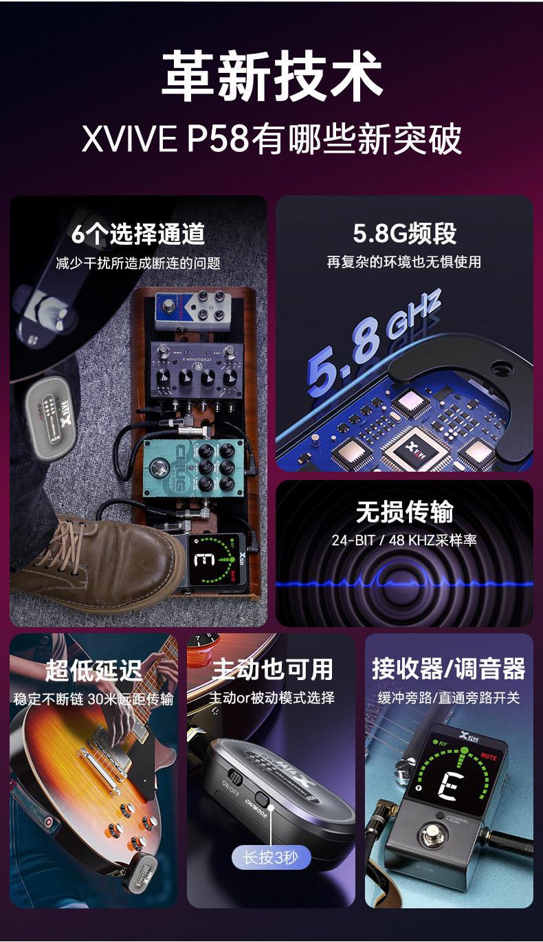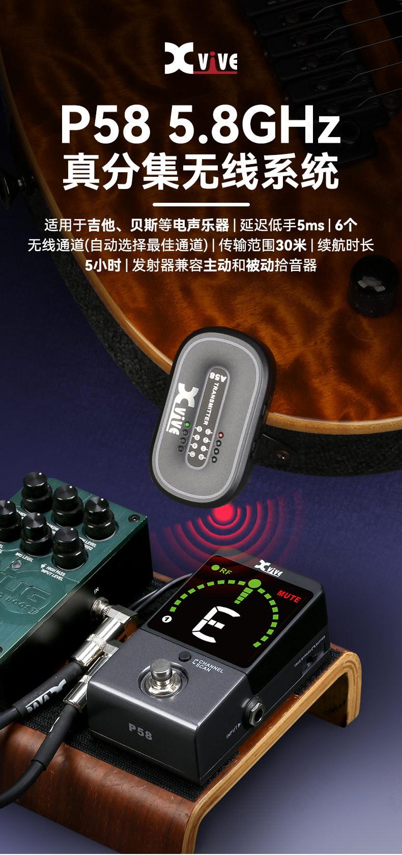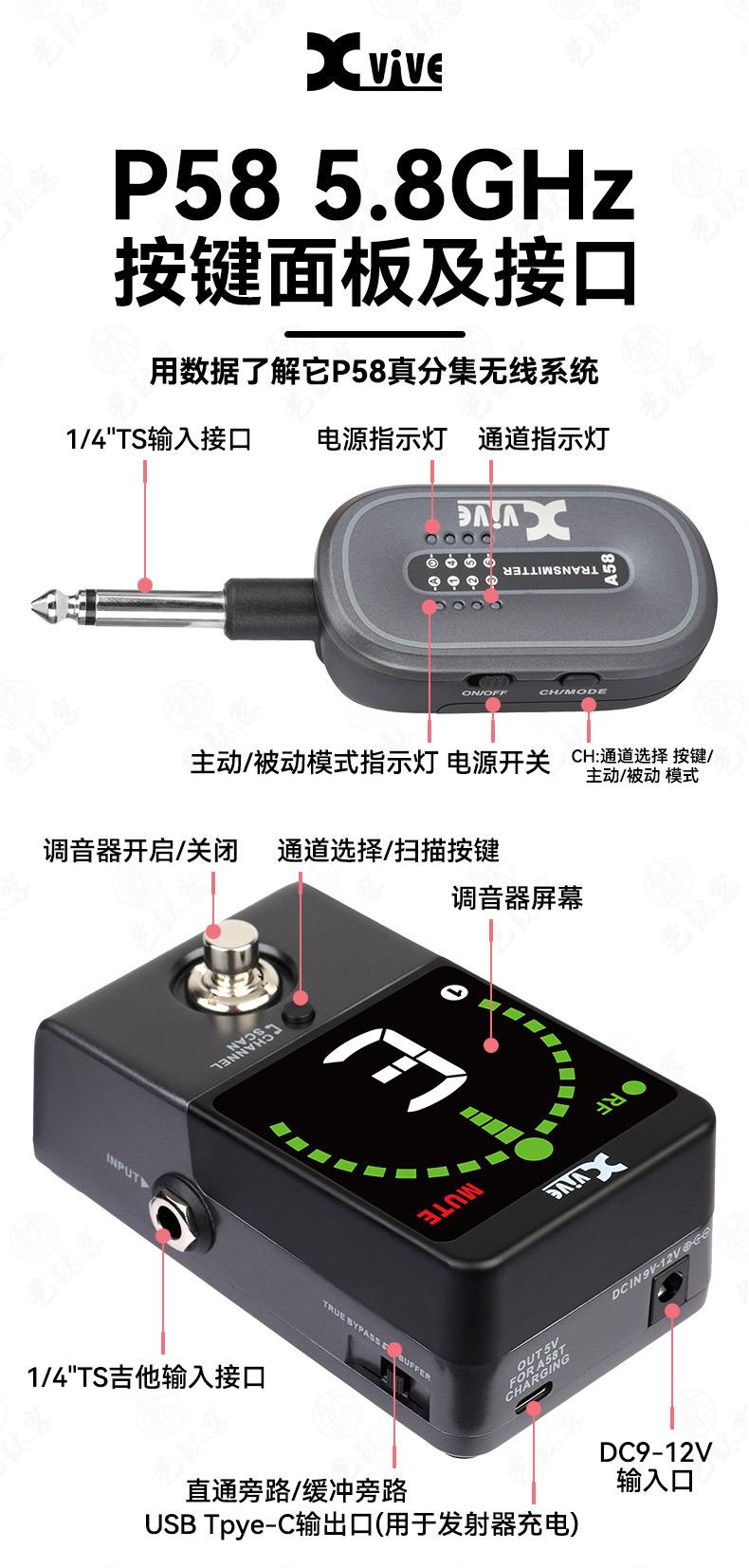 Transmisor Inalámbrico para Guitarra Eléctrica Xvive P58 Receptor de Bajo Cable de Conexión Instrumento Musical Electrónico Cable de Audio Universal
