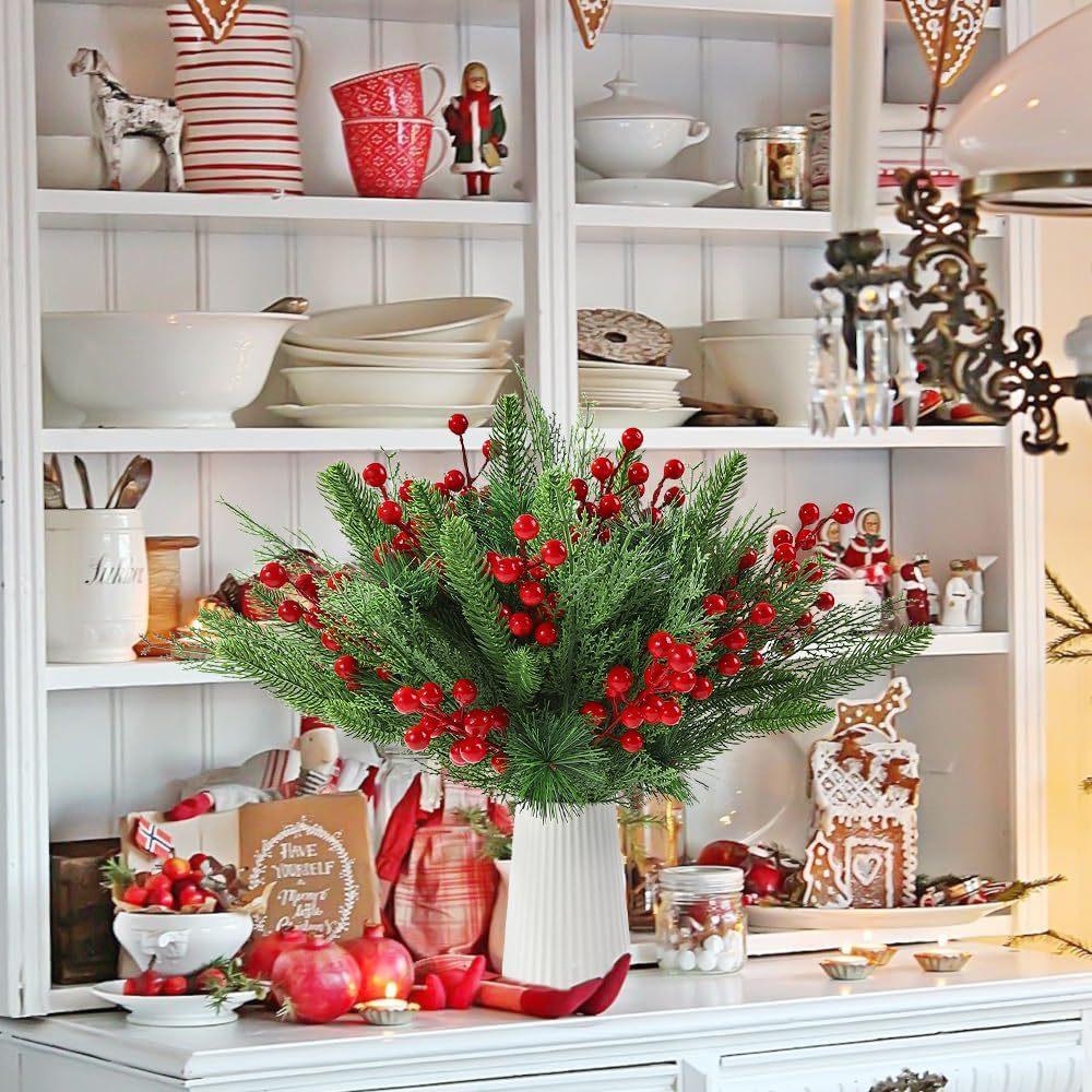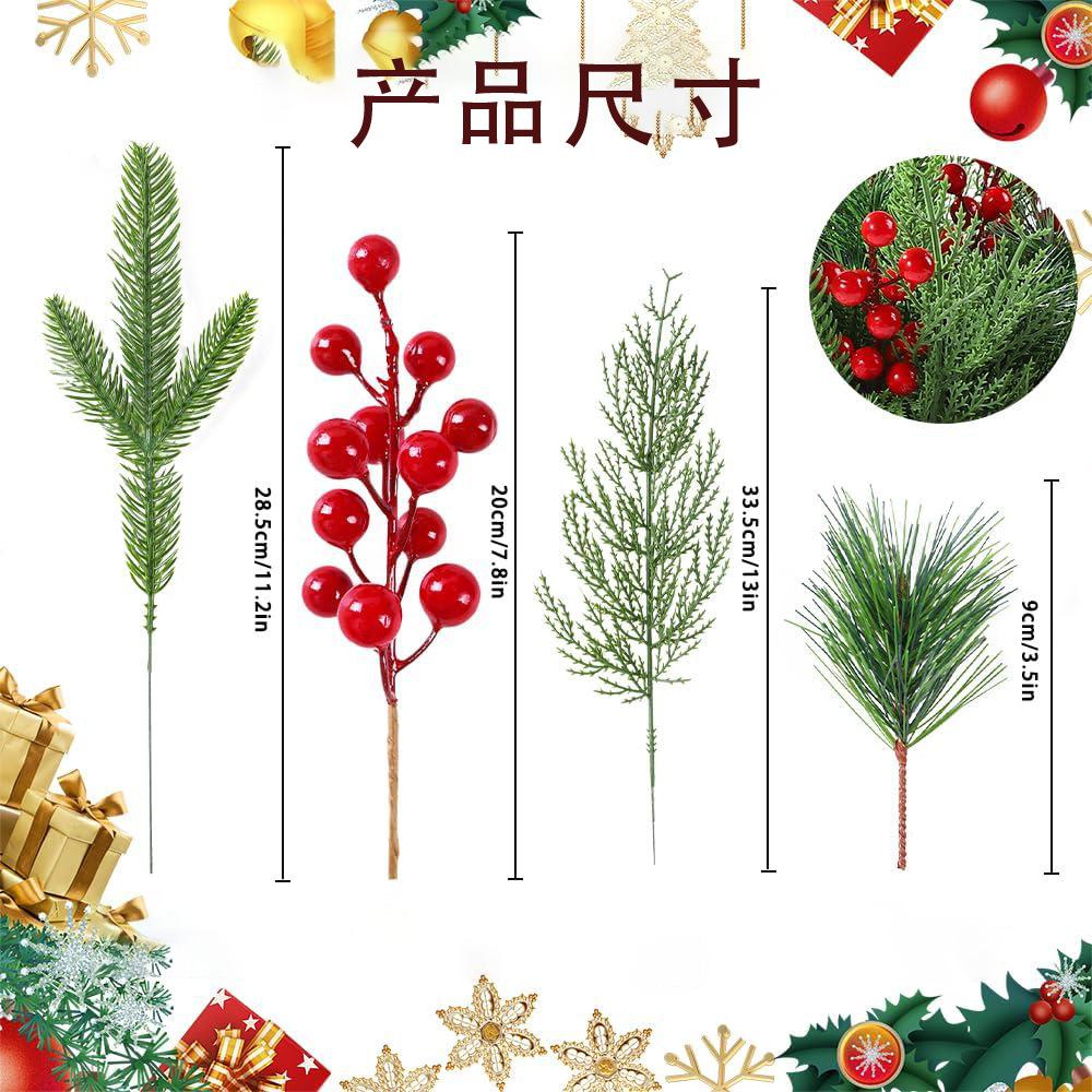 Ventas Calientes Transfronterizas Simulación Navidad Baya Roja Aguja de Pino Rama Insertada Decoración Planta Baya Roja Rama Insertada Accesorios Decoración Árbol de Navidad