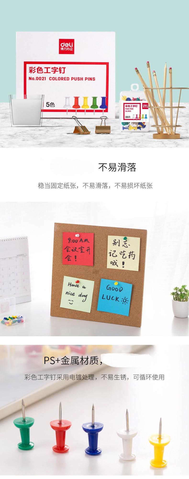 Deli 0021 Alfileres de Corcho Tachuelas Americanas Alfileres de Cabeza Grande Alfileres para Escribir Alfileres para Fotos Alfileres de Colores 35 Piezas