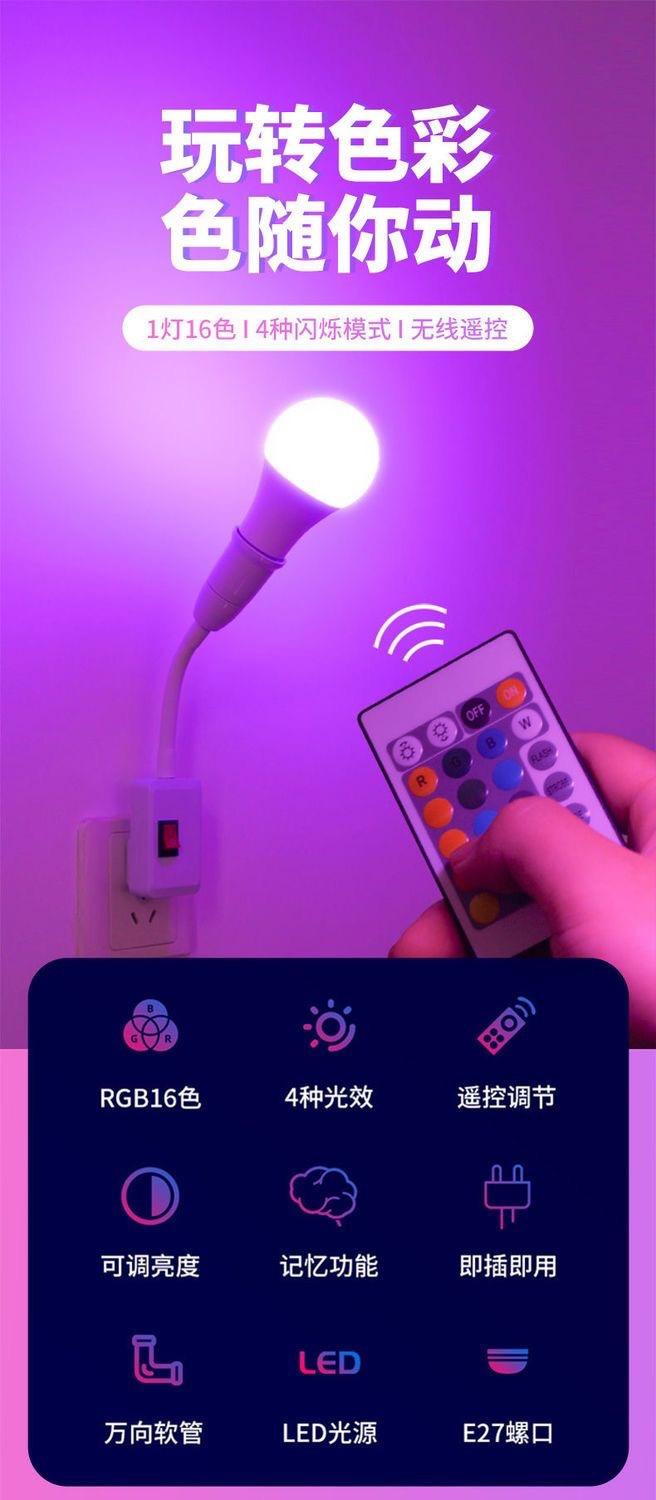 Foco led de color con control remoto luz de relleno atenuación rosca e27 decoración del hogar atmósfera ambiente luz nocturna para lactancia