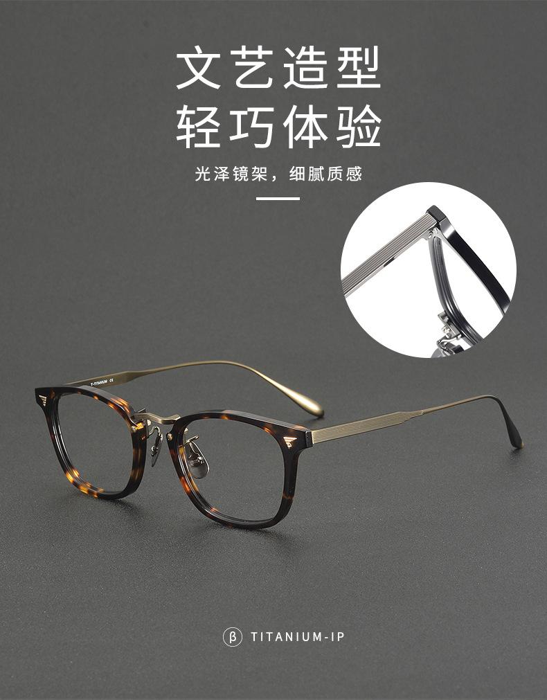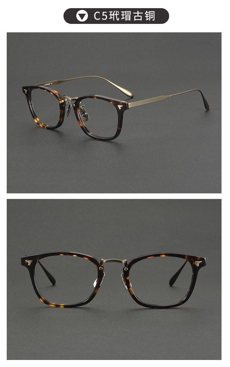 Armazón de Lentes Japonés Hecho a Mano de Cara Grande de Lámina de Titanio Puro Armazón de Lentes de Alta Potencia Extra Grueso Oro Té Personalidad Armazón de Lentes Retro Diseñador