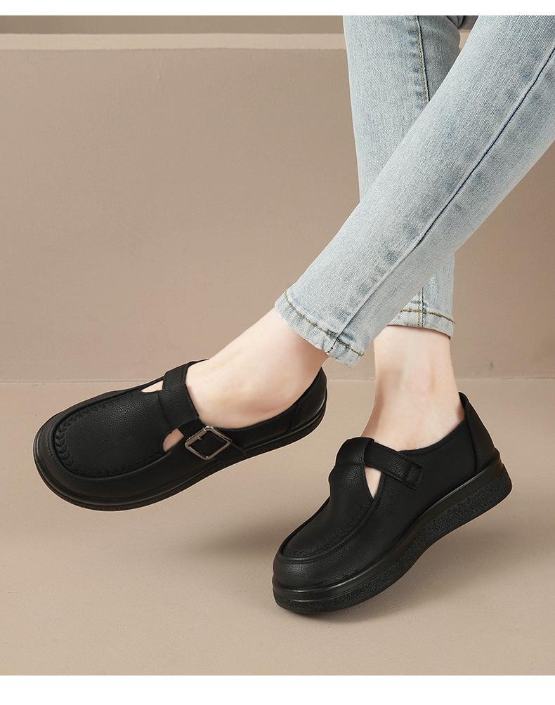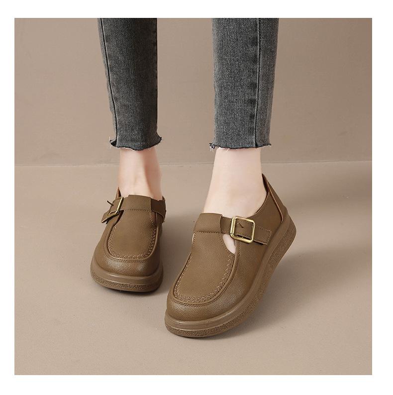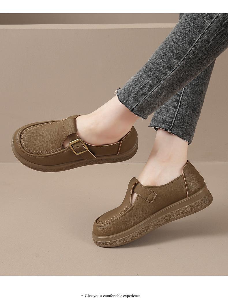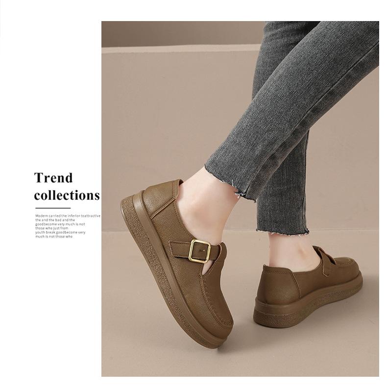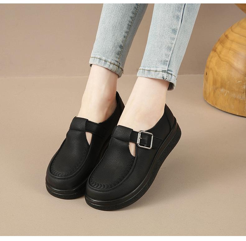 Zapatos de mujer de mediana edad y ancianas primavera y verano nuevos de cuero casuales para exteriores zapatos sencillos de corte bajo suela blanda sin cordones cómodos zapatos de madre