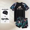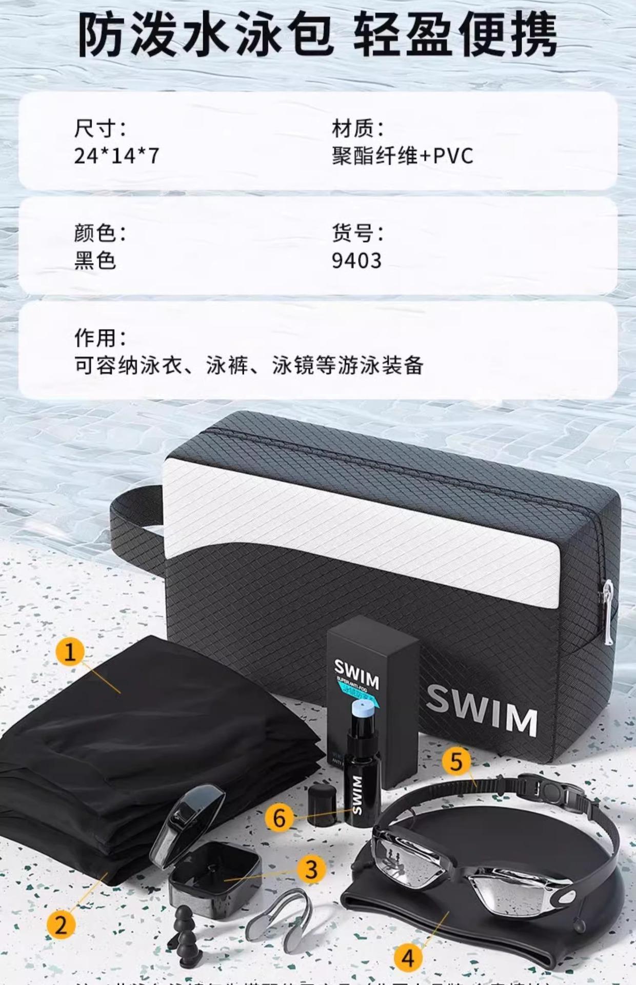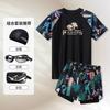Black coconut tree set + swimming cap + swimming goggles + swimming bag