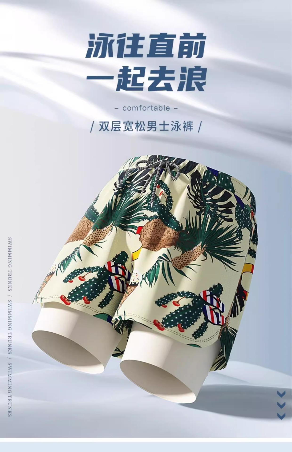 Traje de Baño para Hombre Moda Estampado Nuevo Alta Gama Talla Extra Ajustado Anti-vergüenza Doble Capa Transpirable Secado Rápido Traje
