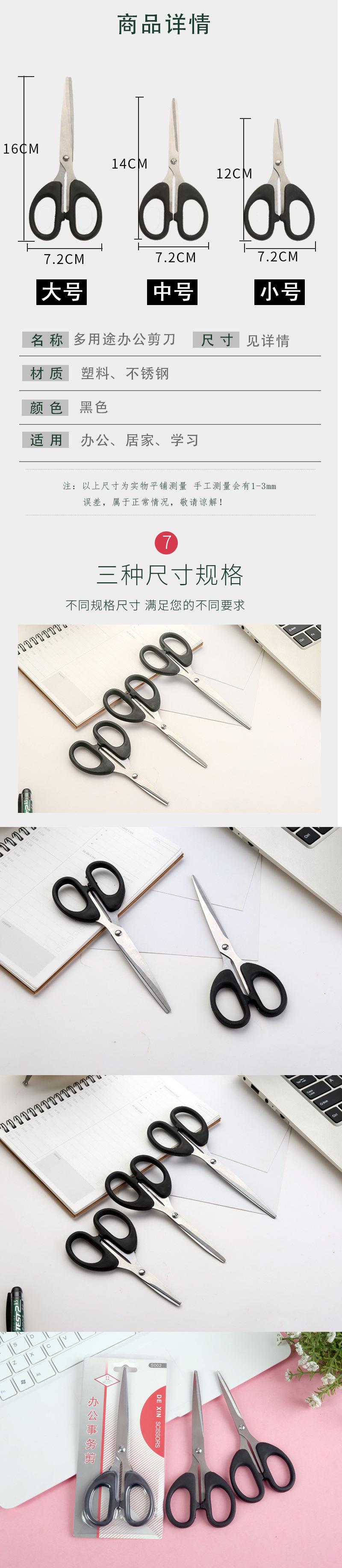 Suministros de oficina tijeras domésticas de acero inoxidable tijeras de oficina negras tijeras de arte pequeñas/medianas/grandes al por mayor