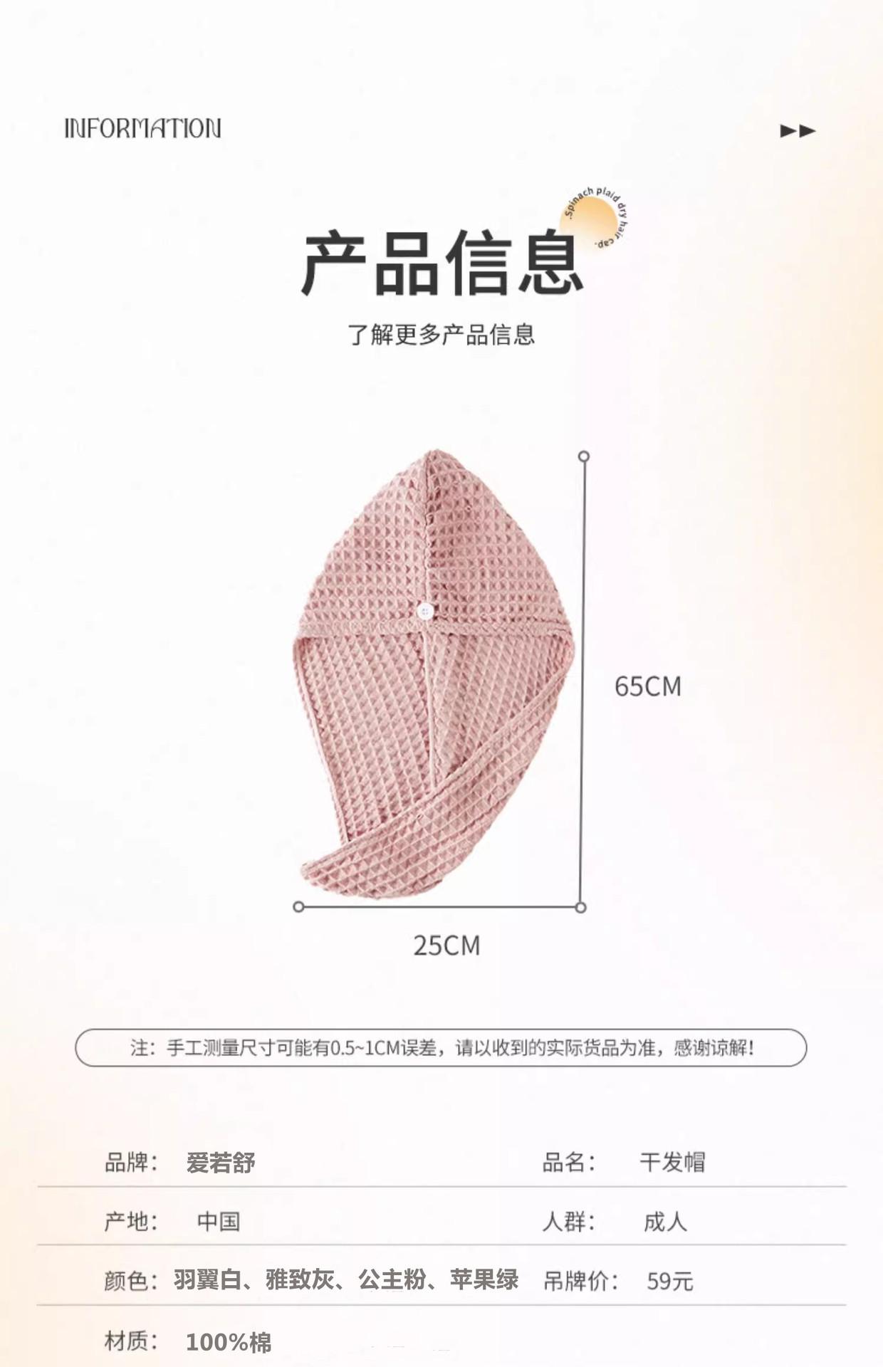 Gorro Absorbente para Cabello Seco Nuevo Estilo Gofre de Algodón Puro Secado Rápido Turbante para Mujer Secado Rápido Sin Electricidad Estática