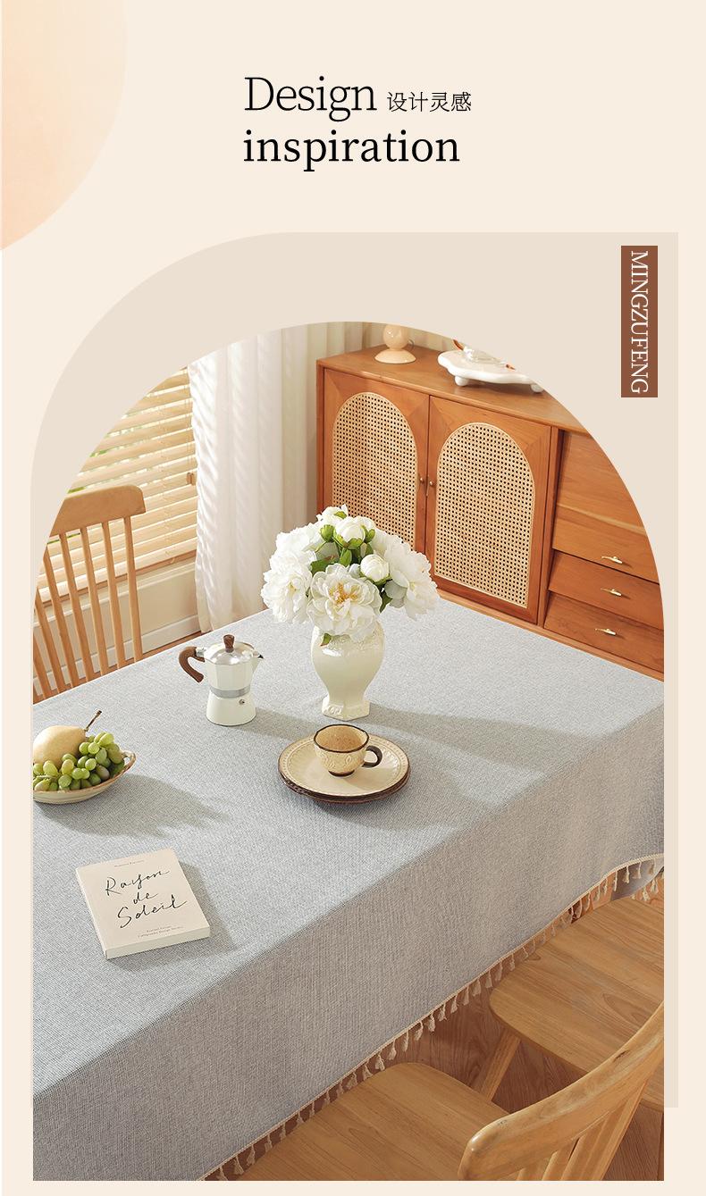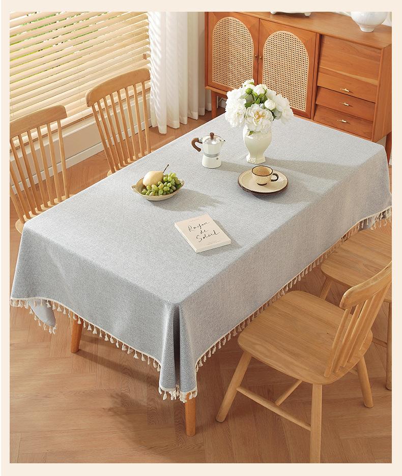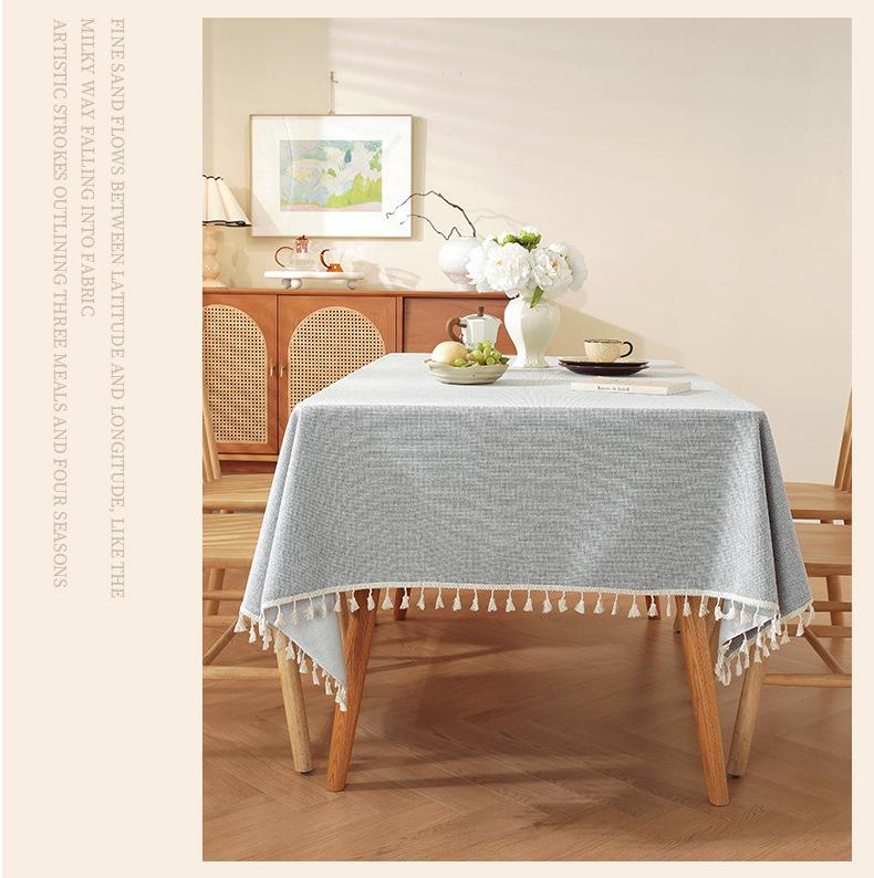Mantel Rectangular de Poliéster Algodón con Borlas Estilo Color Puro Casual y Lujoso Mantel para Mesa de Centro Mantel al por Mayor Repelente al Agua