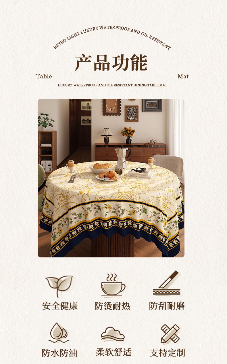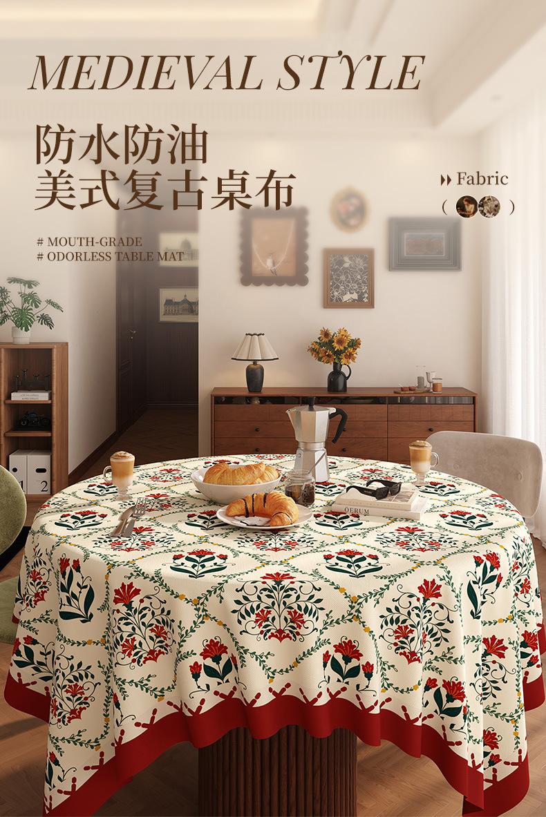Mantel Redondo Americano Impermeable Antimanchas Lavable 2025 Nuevo Retro Cubre Mesa de Comedor Mesa de Centro