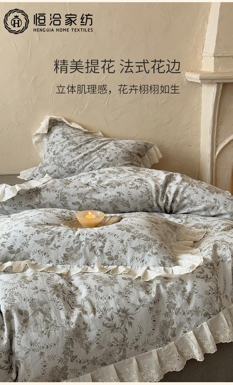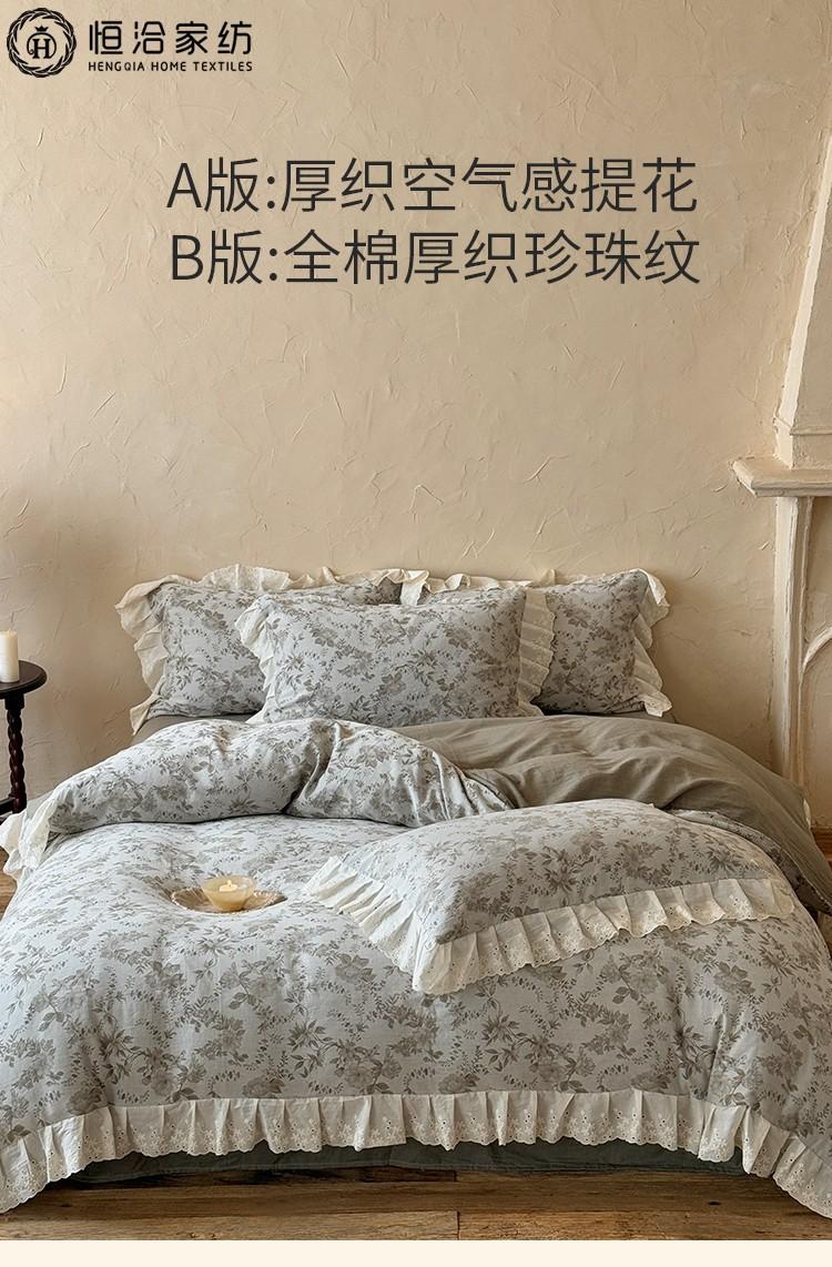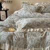 Nuevo Juego de Cuatro Piezas de Punto Grueso de Algodón Francés Retro Floral Jacquard 100% Algodón Funda de Edredón Ropa de Cama 1.2 Rosa Verde