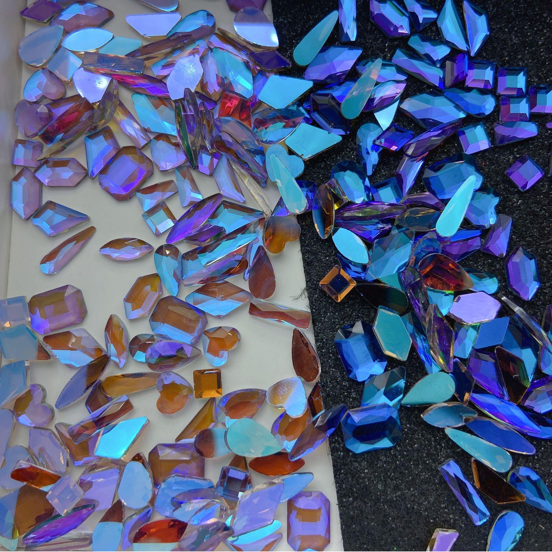 Nuevo Aurora Iridiscente Púrpura Fantasma Fondo Plano Diamante Irregular DIY Accesorios para Arte de Uñas Pedrería de Vidrio al por Mayor