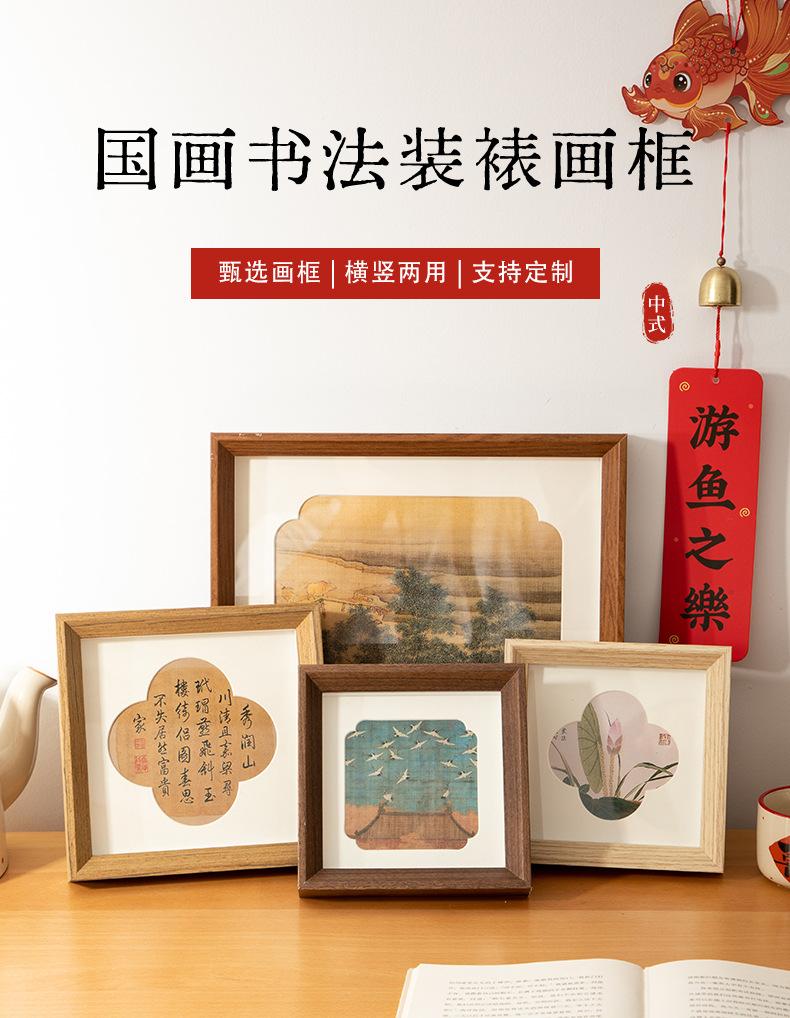 Exhibidor de Marco de Fotos Hecho a Mano DIY Imitación Decorativo Estilo Chino Tarjeta de Regalo Montaje en Papel Marco de Fotos de 8 pulgadas para Colgar en la Pared Salón Vacaciones Marco de Fotos