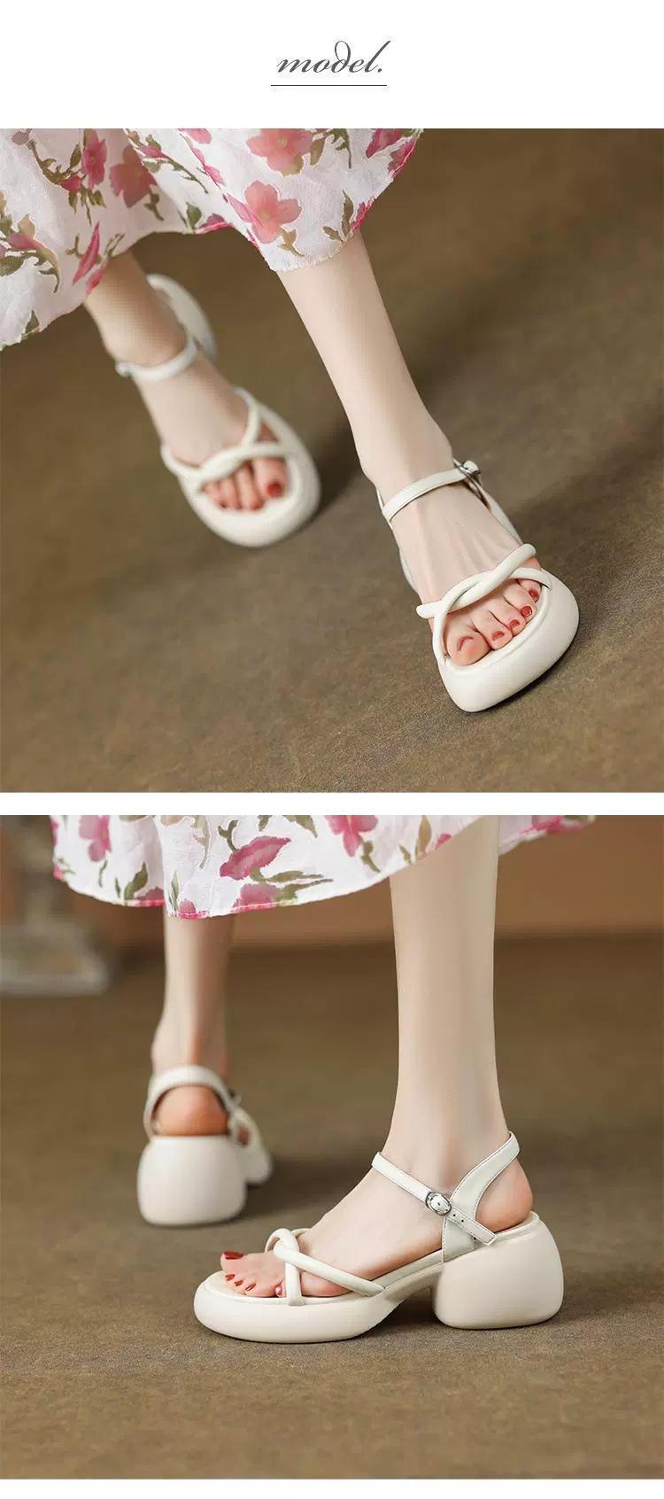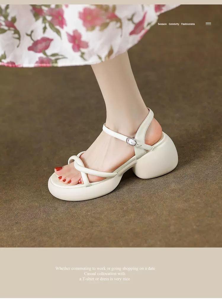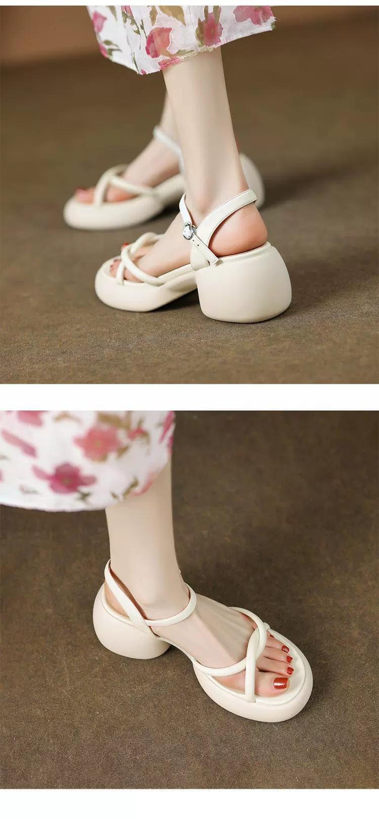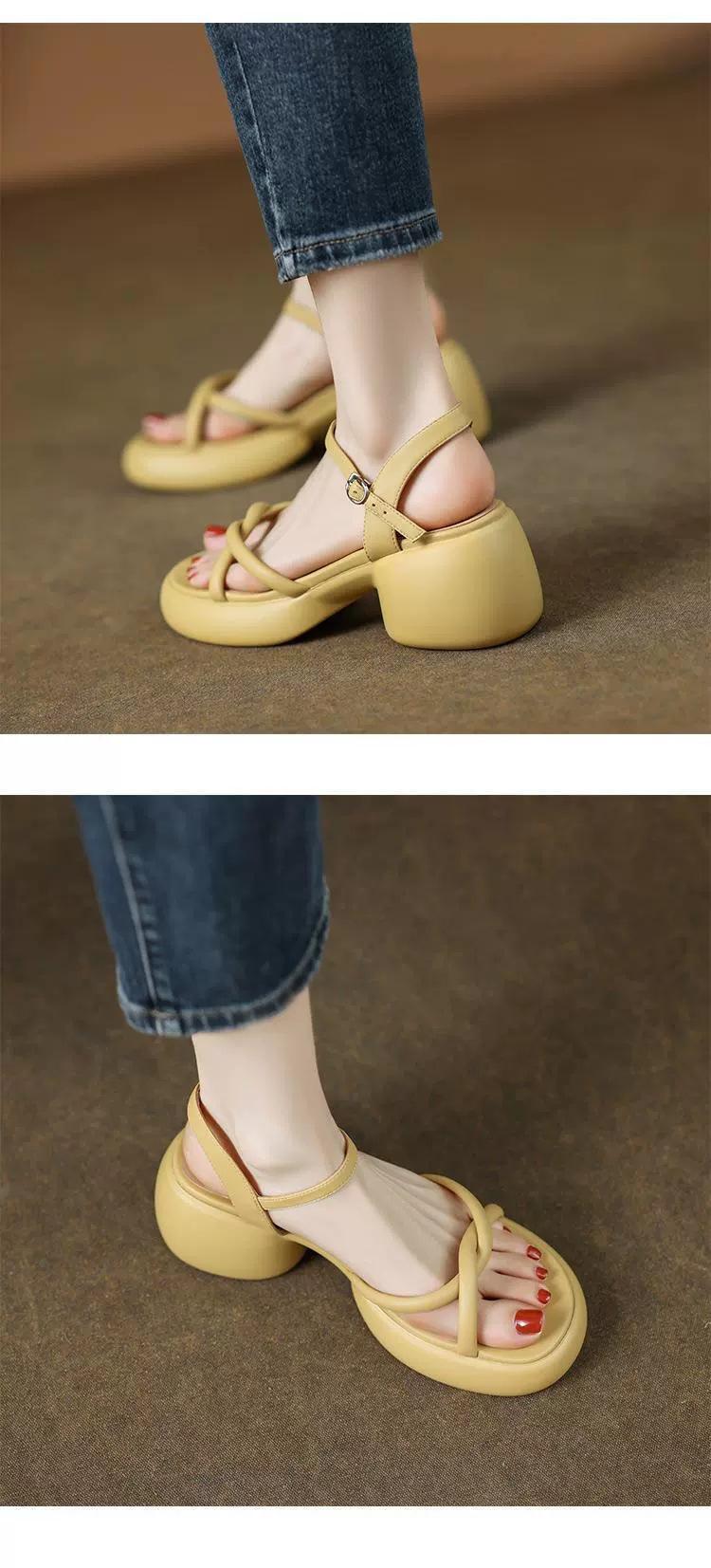 Sandalias Yicang para Mujer Nuevas Tacón Grueso Suela Suave Tira Cruzada Suela Gruesa Sandalias Romanas Playa Moda Verano Cómodas Combinables