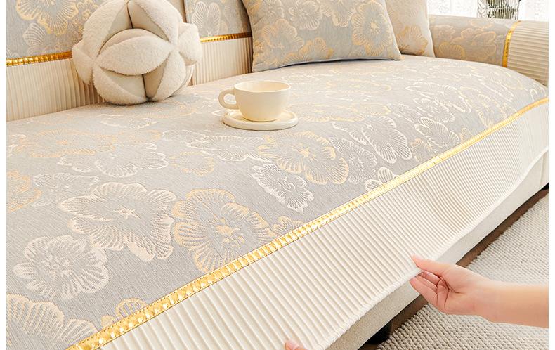 Cojín de Sofá de Chenilla 2025 Nuevo Estilo Universal para Cuatro Estaciones de Alta Gama Antideslizante Cojín de Asiento de Sofá Cubierta de Sofá de Fila Recta