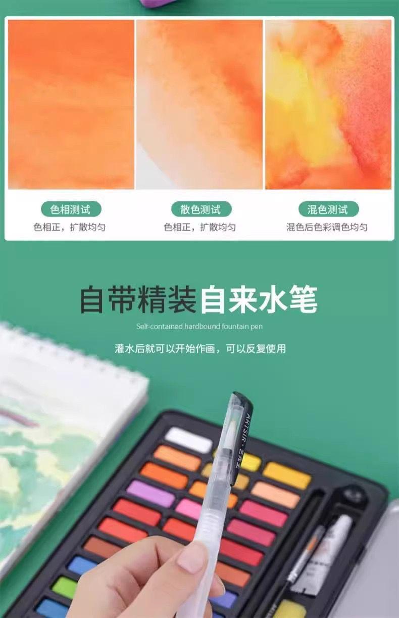 36 colors solid watercolor paint (black box), 36 colors solid watercolor paint (blue box)