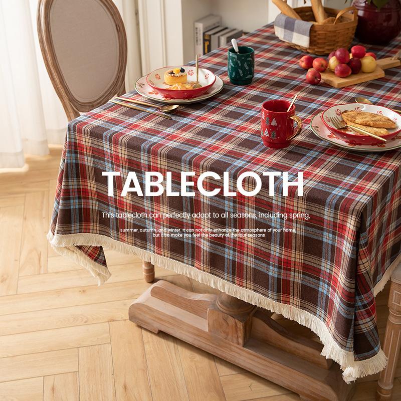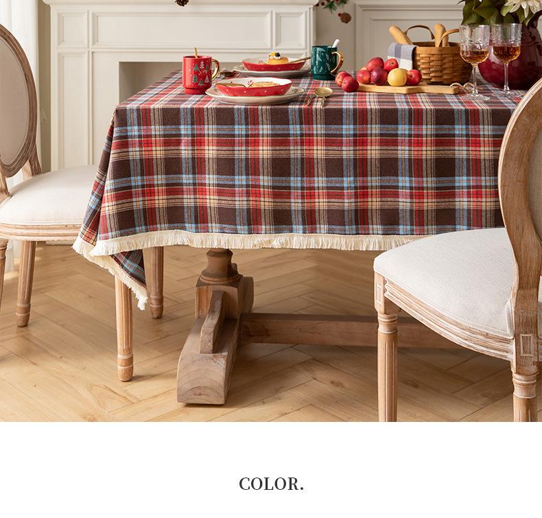 Compra Mantel de cuadros tejidos de color de venta caliente para Navidad de venta caliente transfronterizo, mantel de borlas de cuadros vintage, decoración de ambiente para fiestas al por mayor en Joom.pro