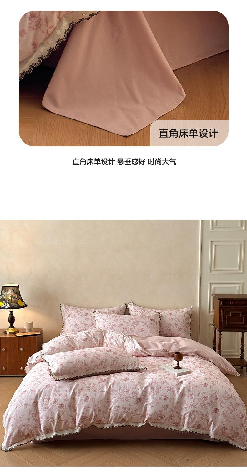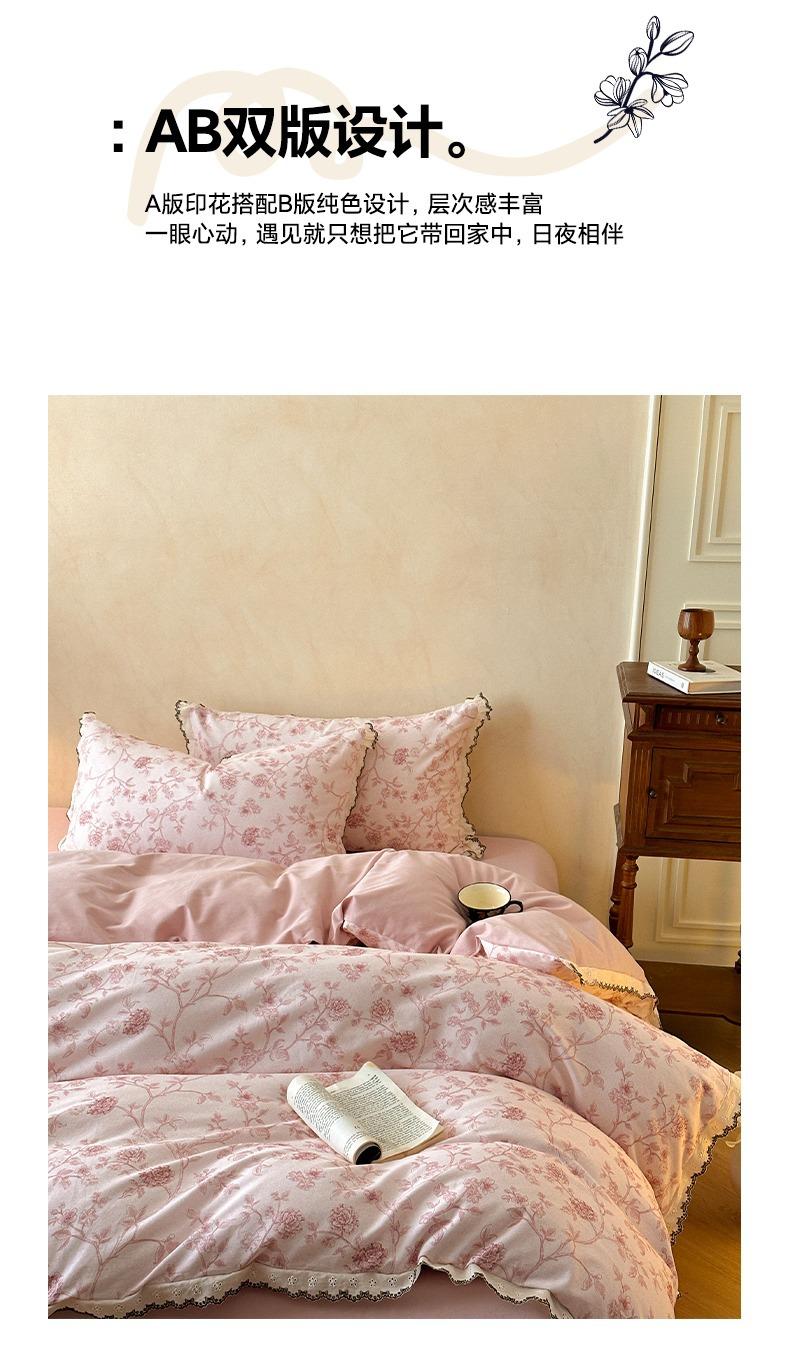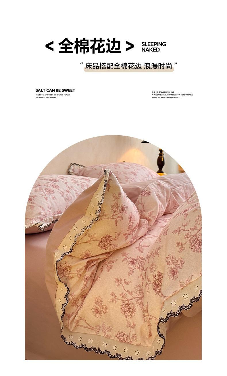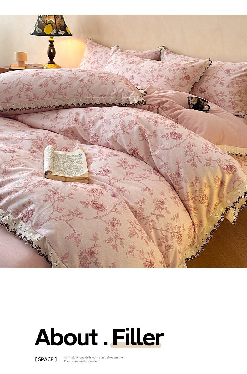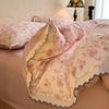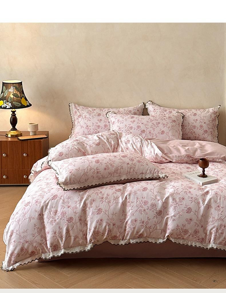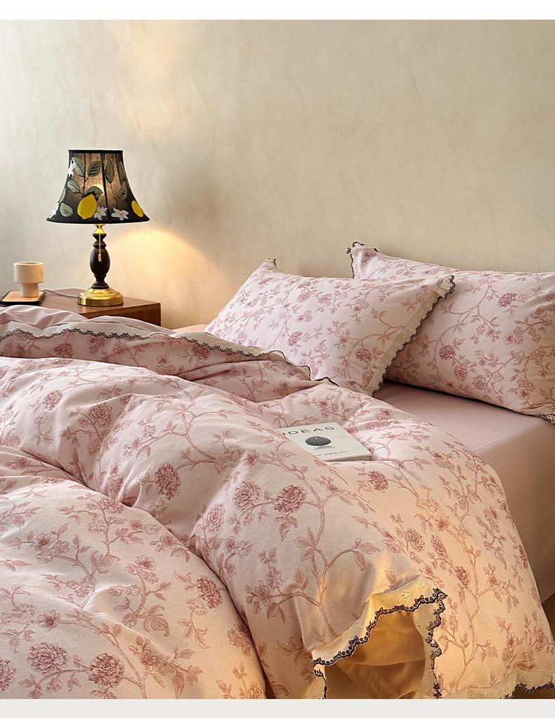 Clase A 100% Algodón Franela de Algodón Puro Estilo Encaje Retro Francés Juego de Cuatro Piezas Funda Nórdica Estampada Funda Nórdica Sábana 3 Piezas