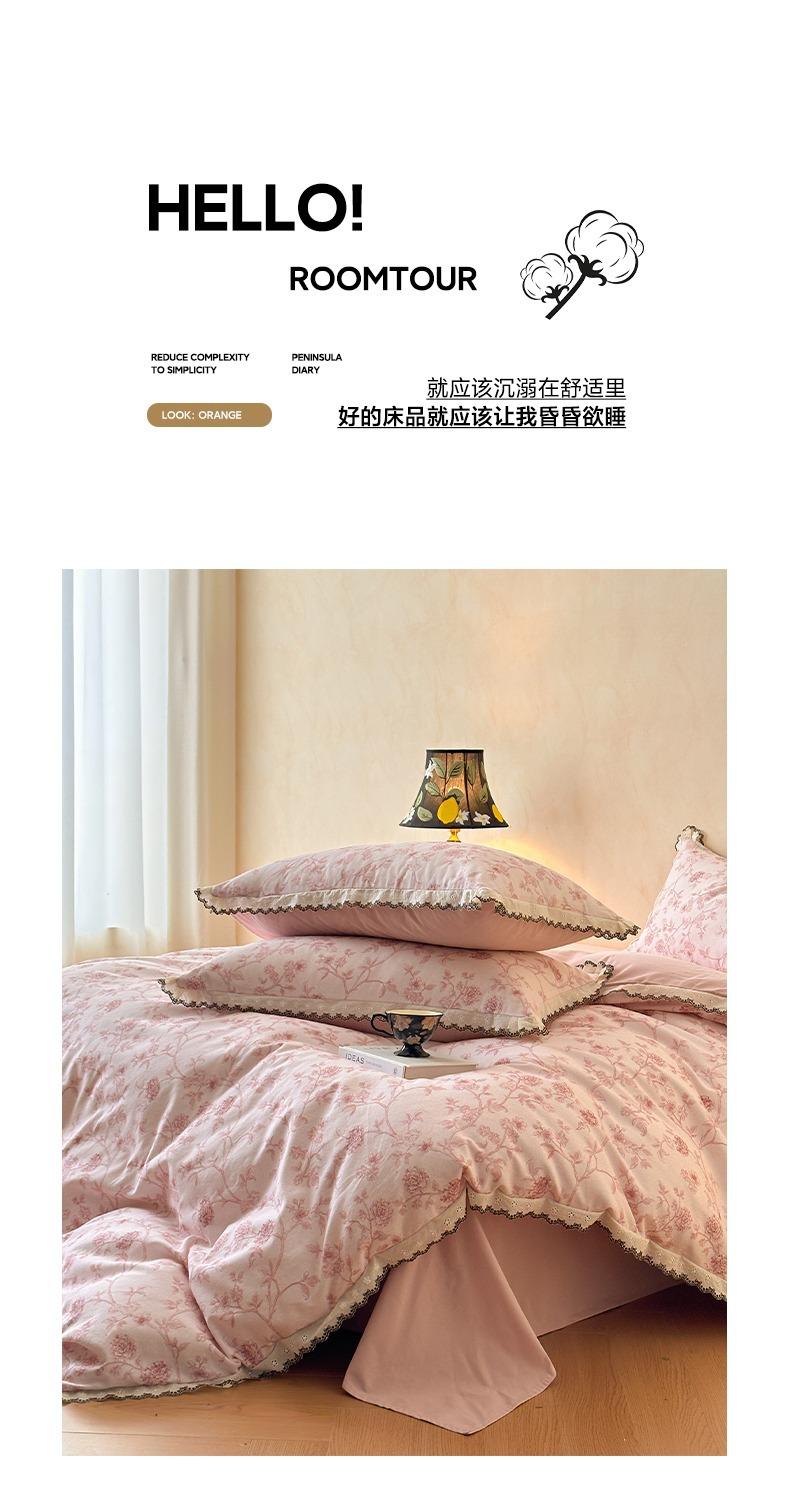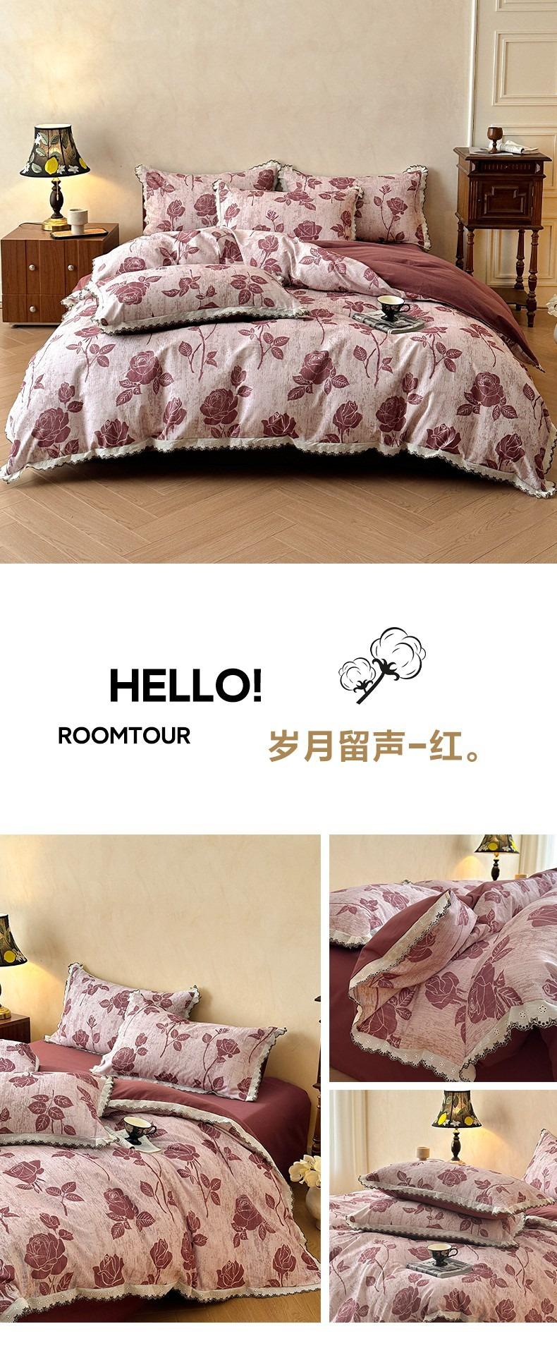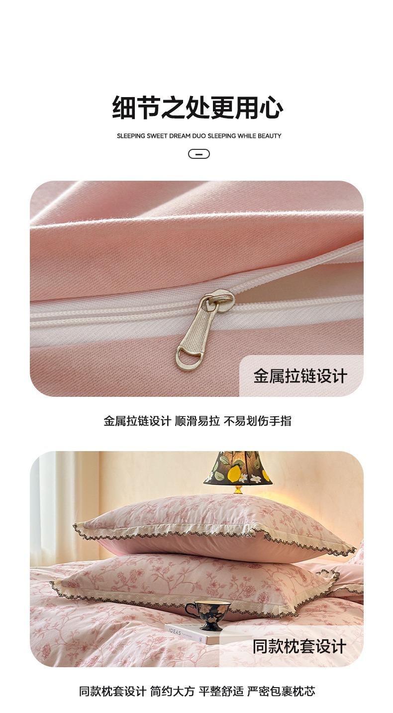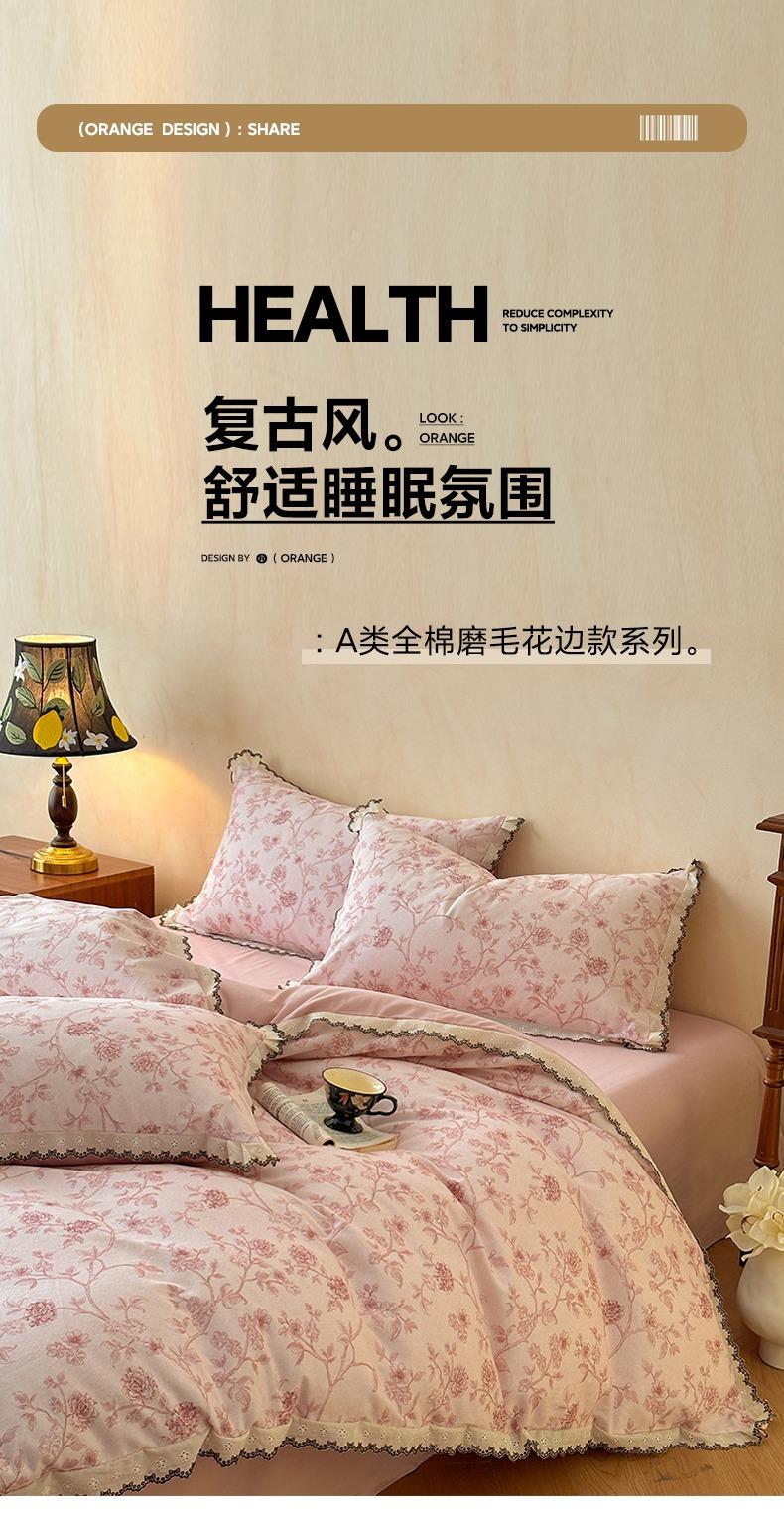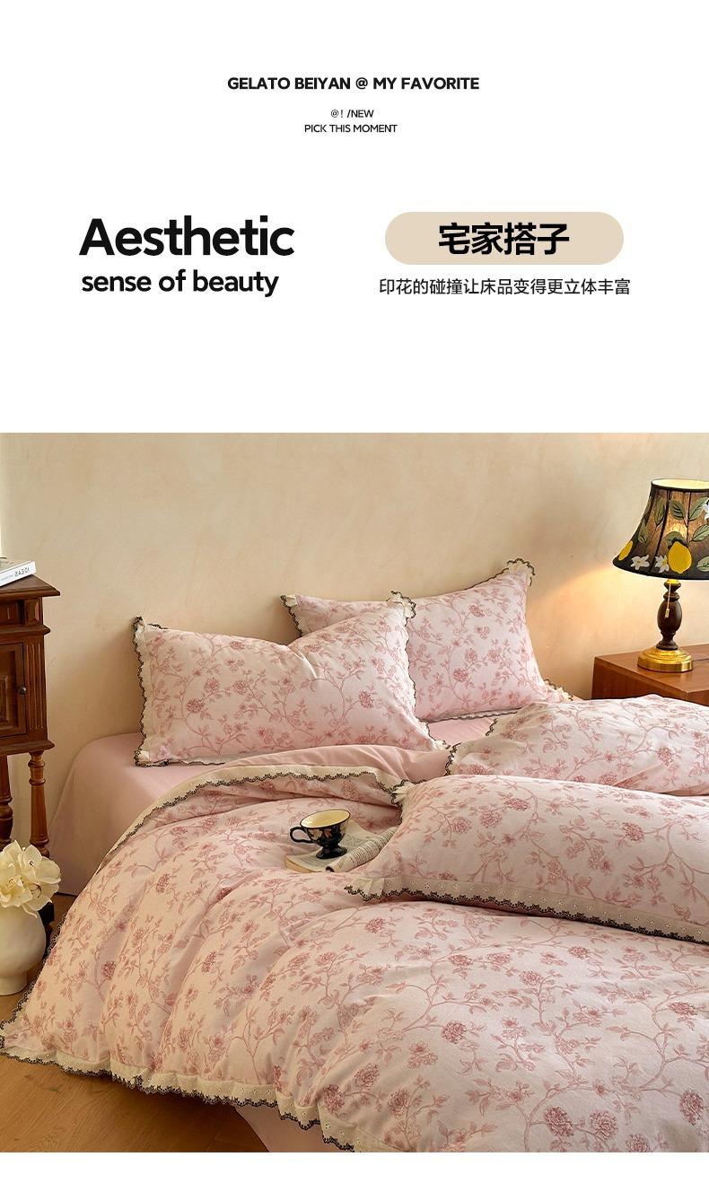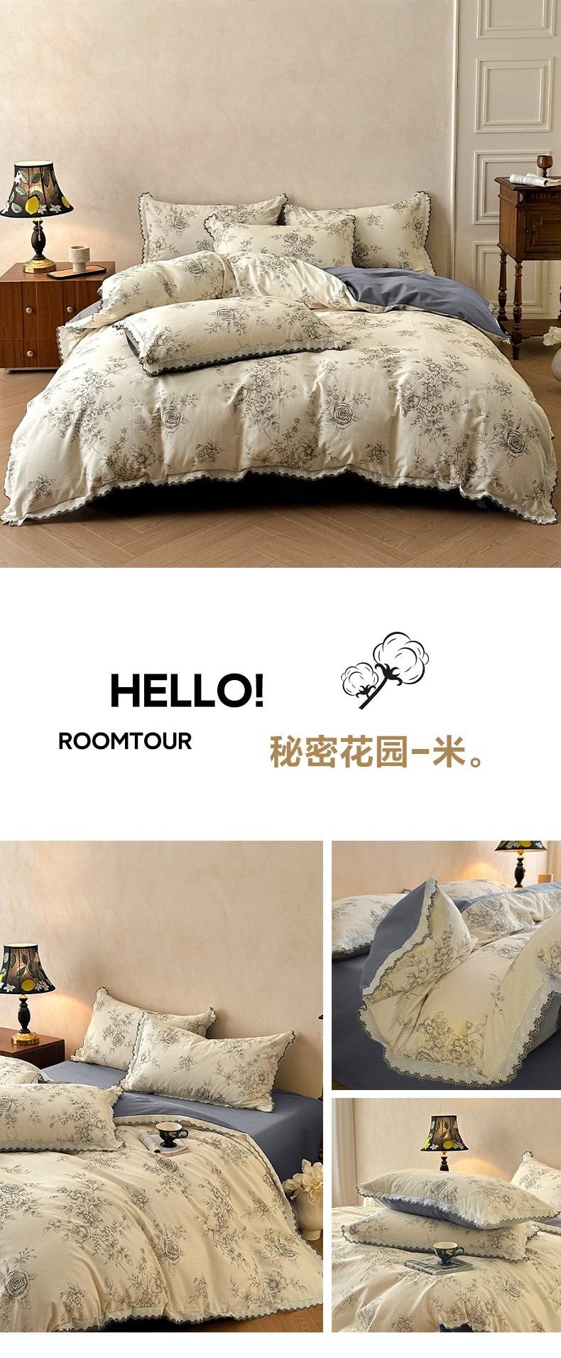 Clase A 100% Algodón Franela de Algodón Puro Estilo Encaje Retro Francés Juego de Cuatro Piezas Funda Nórdica Estampada Funda Nórdica Sábana 3 Piezas