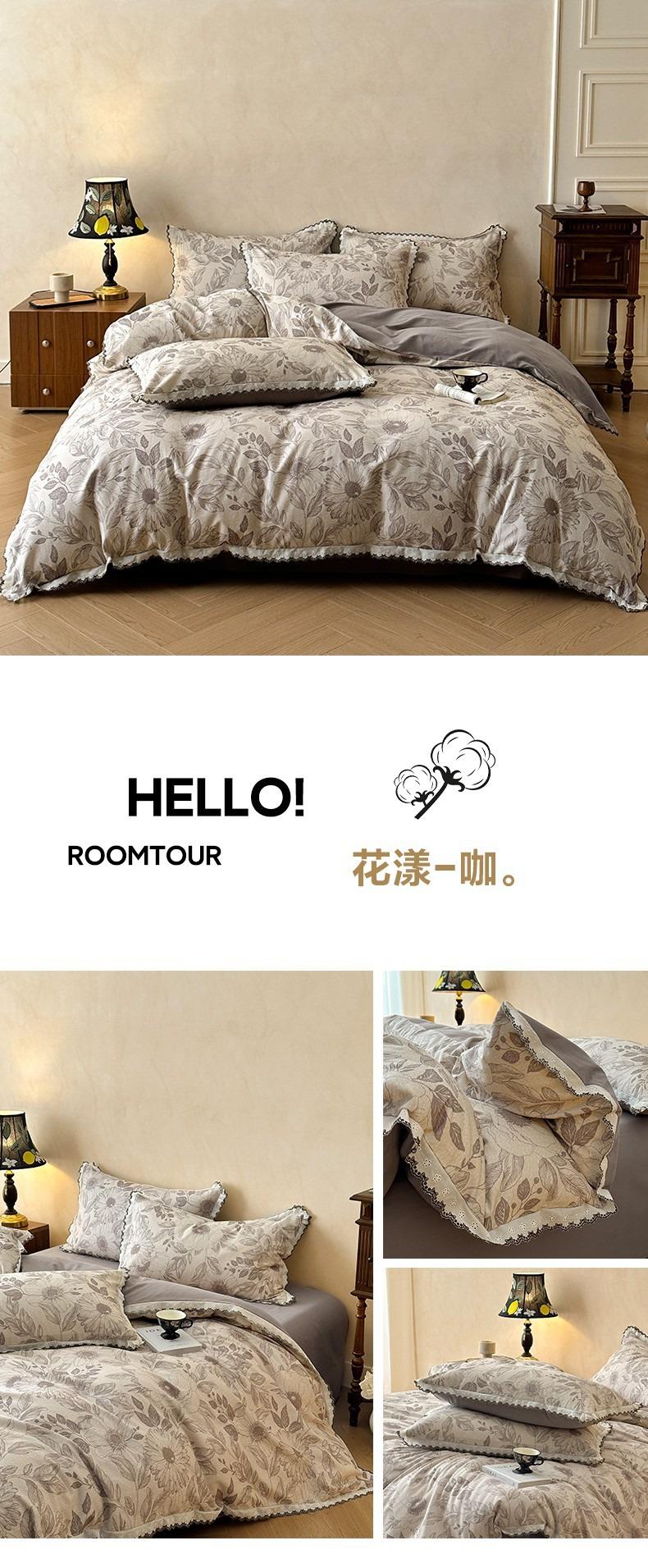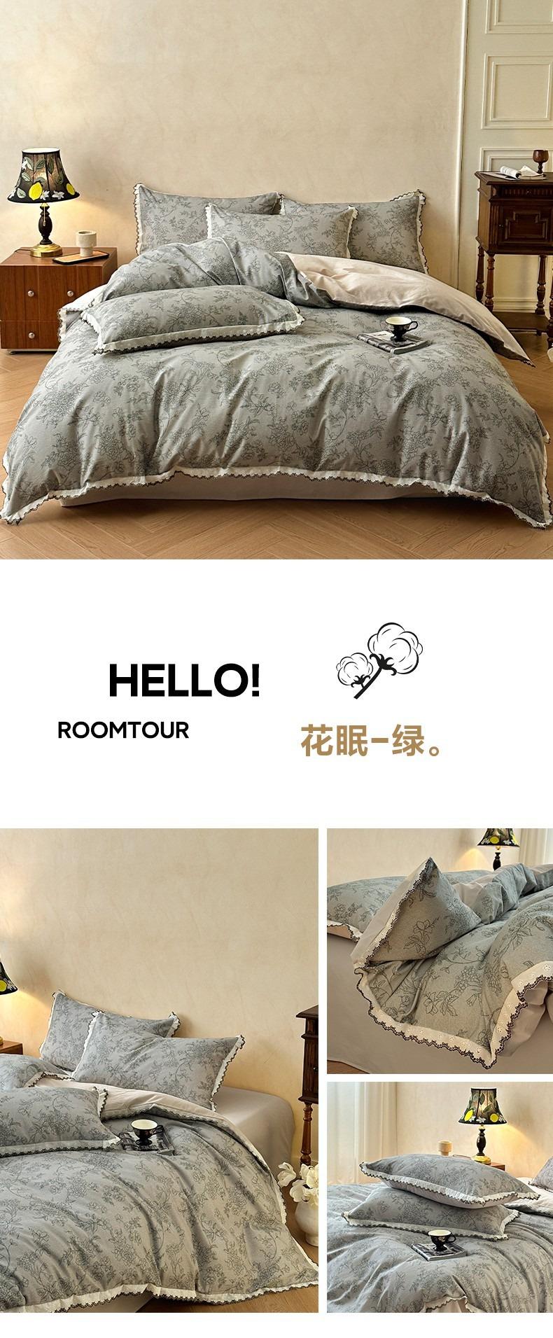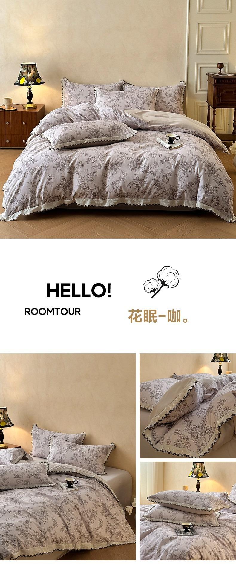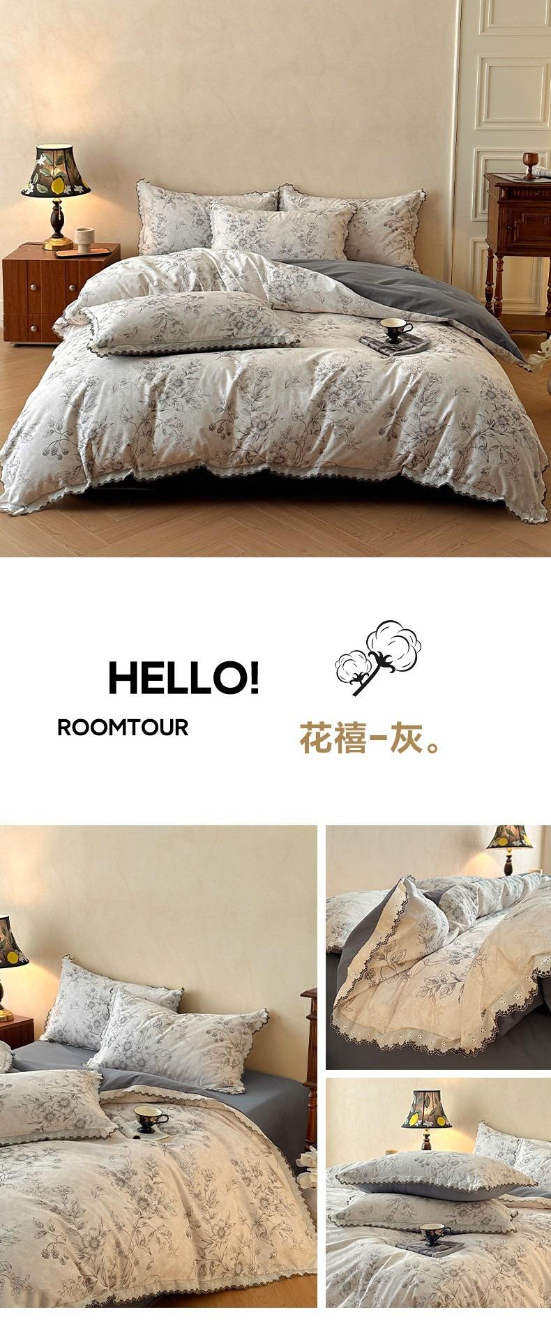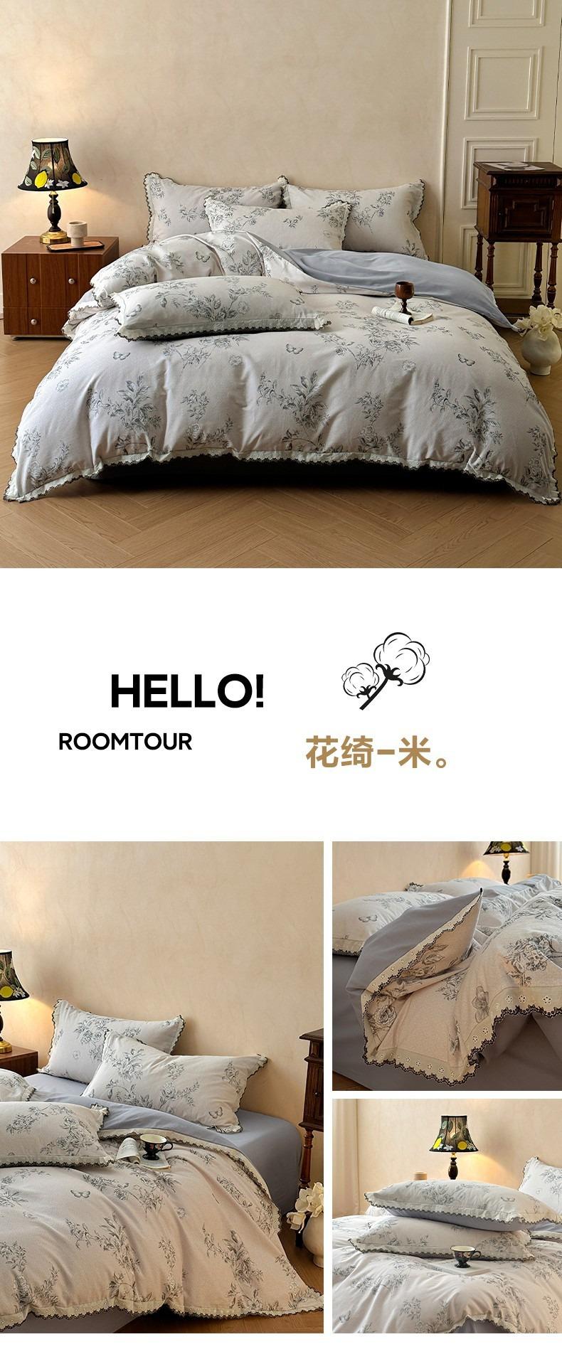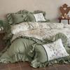 Clase A 100% Algodón Franela de Algodón Puro Estilo Encaje Retro Francés Juego de Cuatro Piezas Funda Nórdica Estampada Funda Nórdica Sábana 3 Piezas
