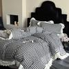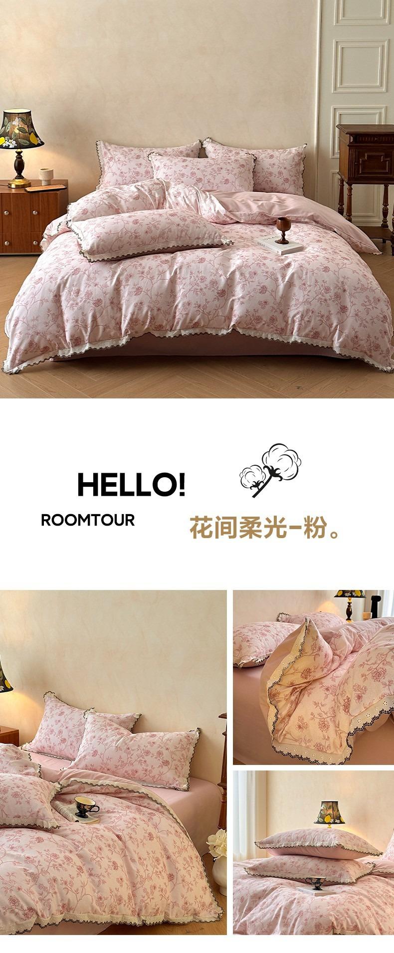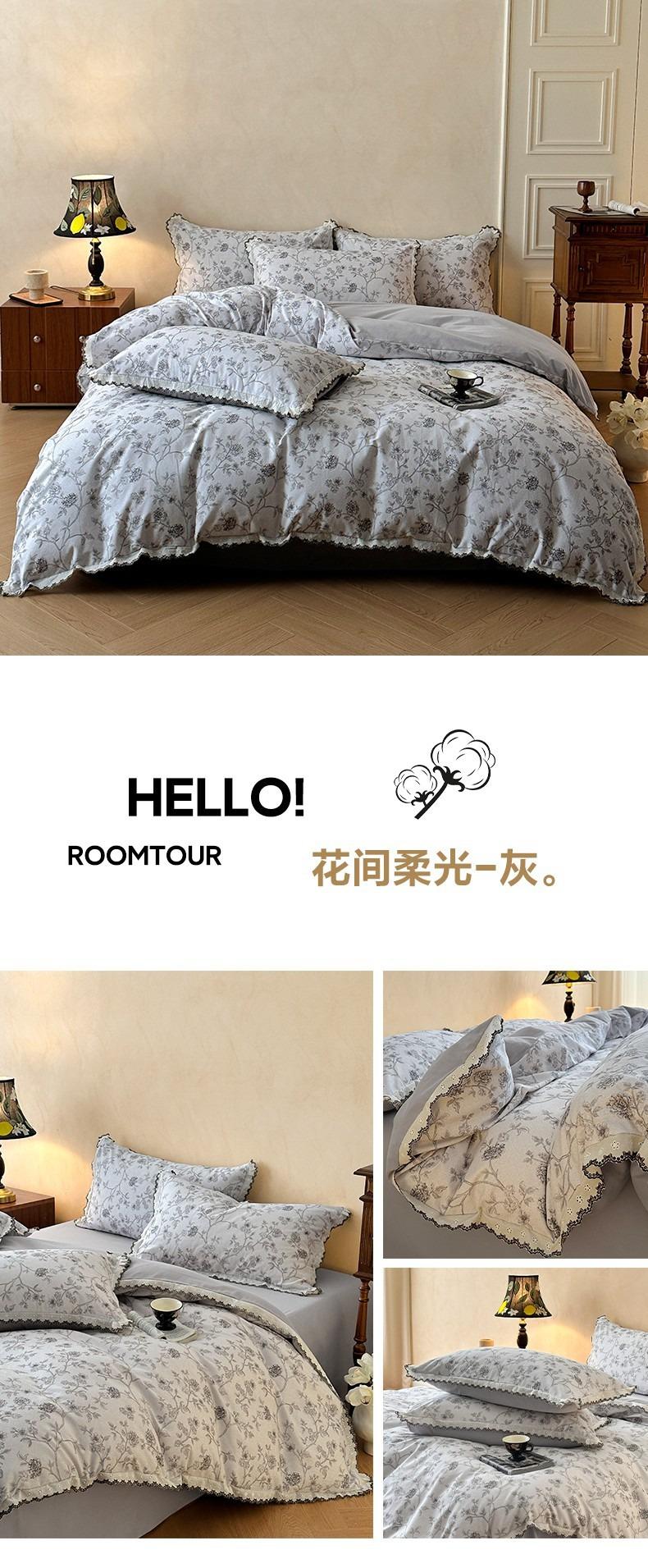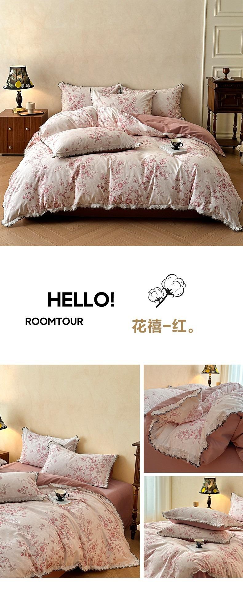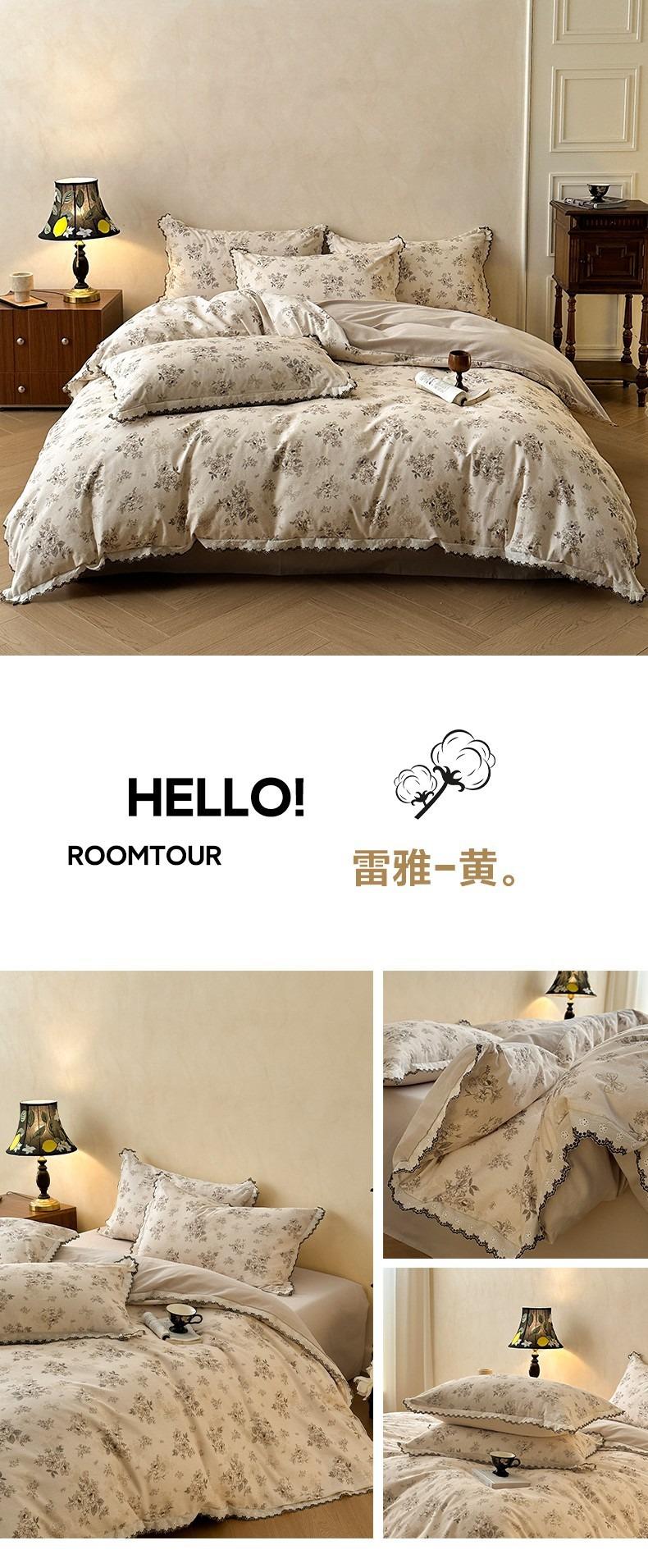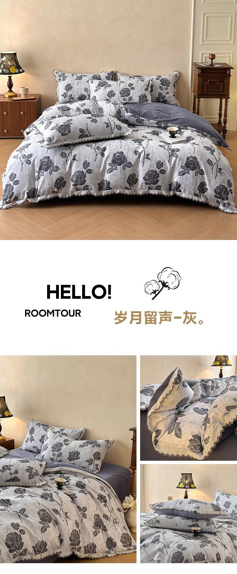 Clase A 100% Algodón Franela de Algodón Puro Estilo Encaje Retro Francés Juego de Cuatro Piezas Funda Nórdica Estampada Funda Nórdica Sábana 3 Piezas