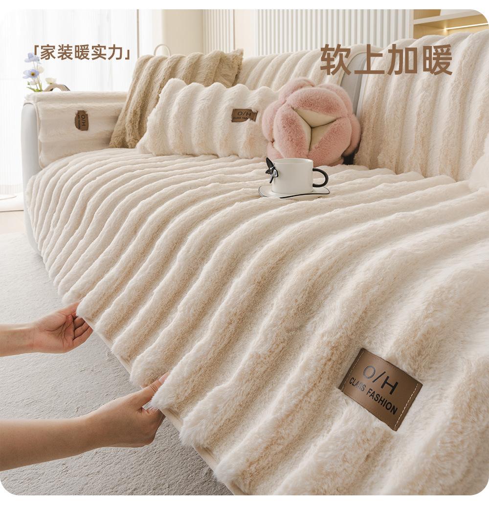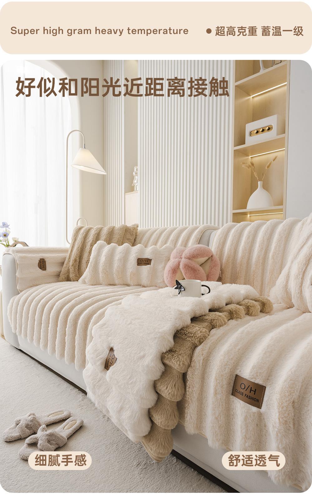 Cojín de Sofá Minimalista Cálido de Piel de Conejo de Alto Peso de Una Pieza Modelo Nuevo Otoño/Invierno 2025 Cojín de Asiento Antideslizante Transfronterizo