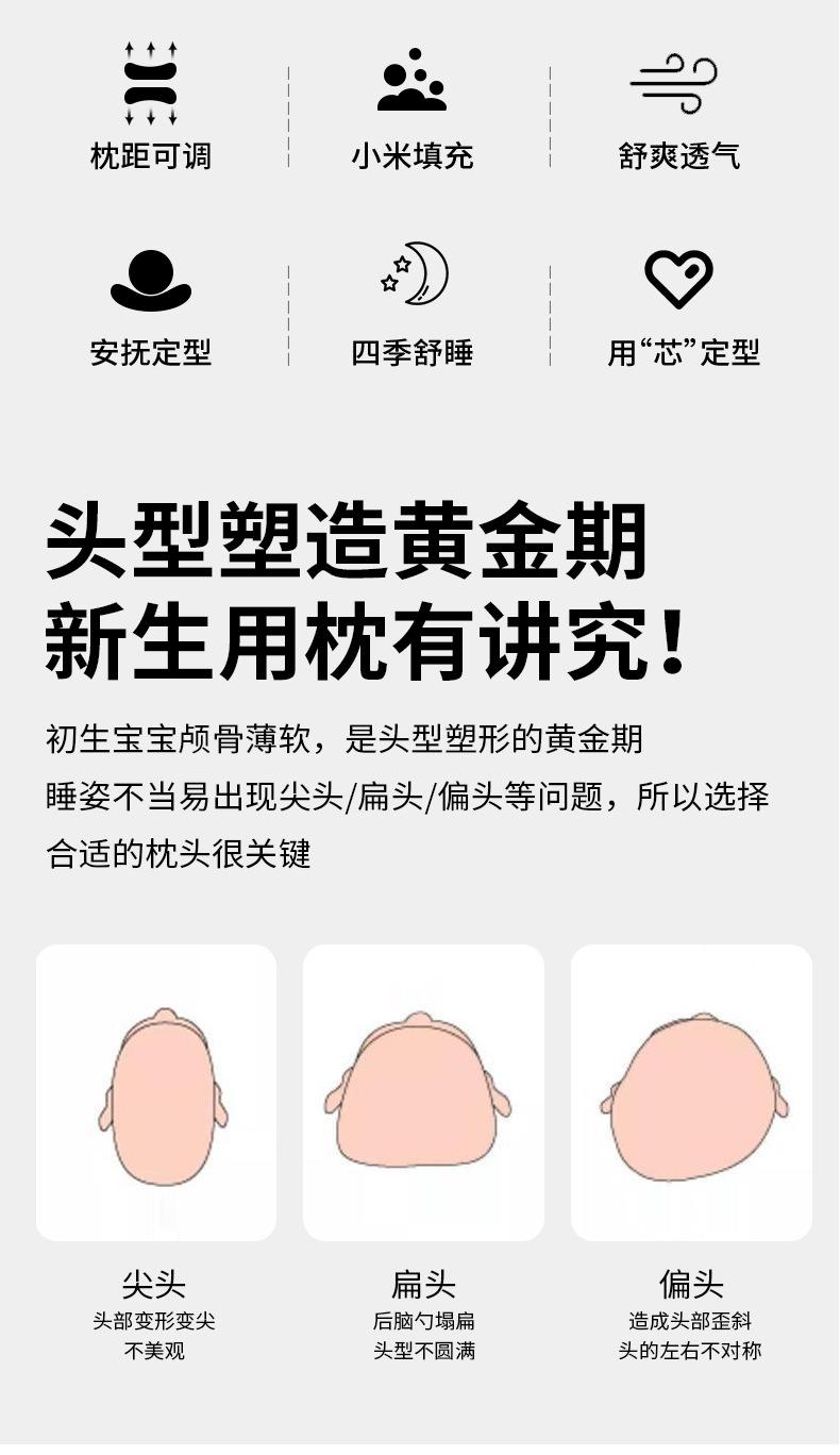Almohada para dar forma al bebé, Almohada de mijo para recién nacido, 0 a 6 meses y más, Almohada extraíble para corrección y anti-cabeza excéntrica para bebé