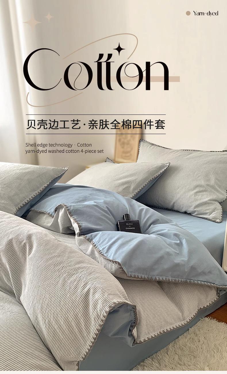 Upgraded Version-Striped Grey-Scallop Edge【Class A Xinjiang Pure Cotton Fabric Softer and More Skin-Friendly】