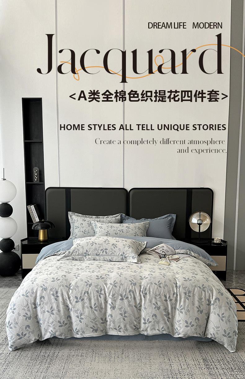 Compra Juego de cuatro piezas jacquard teñido en hilo retro de grado A, 100% algodón, algodón lavado, sábana encimera, sábana bajera, suave, estilo para las cuatro estaciones al por mayor en Joom.pro