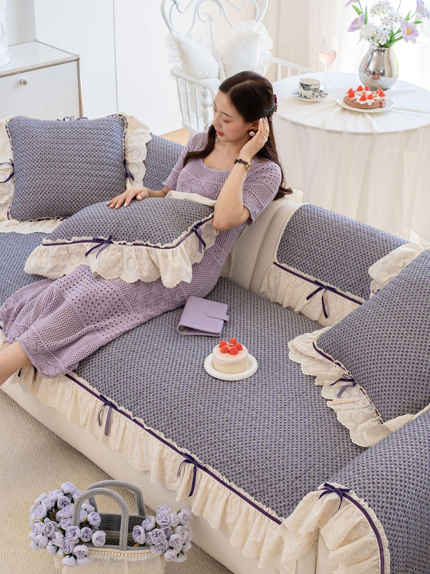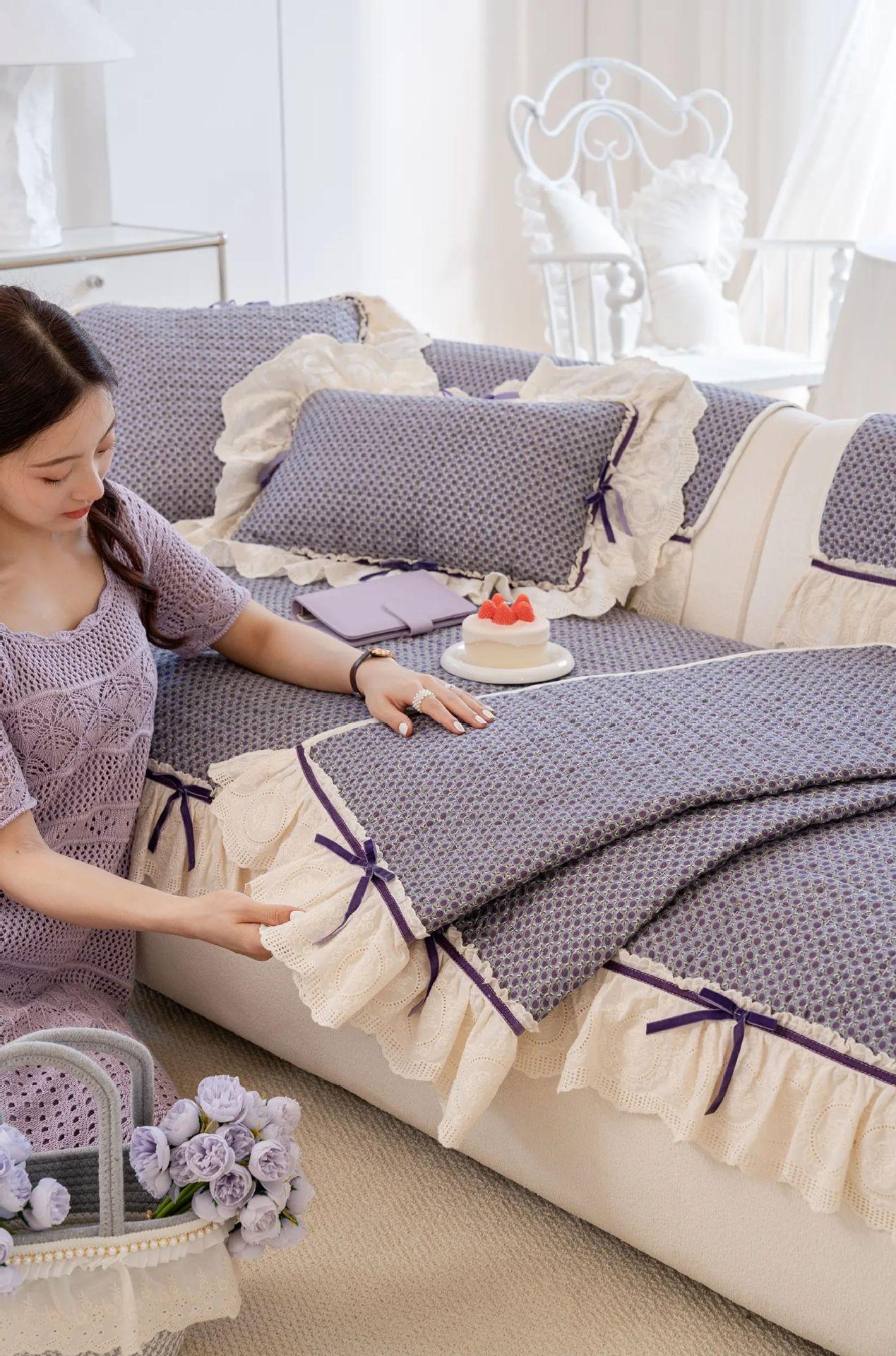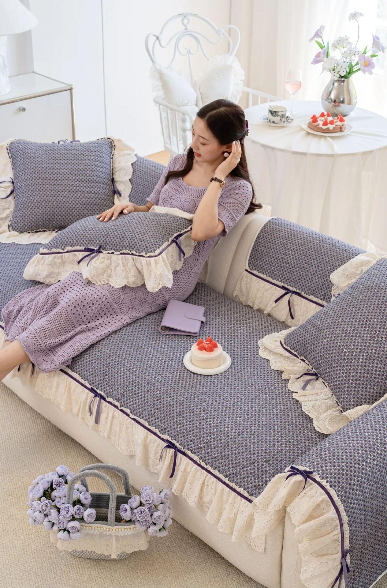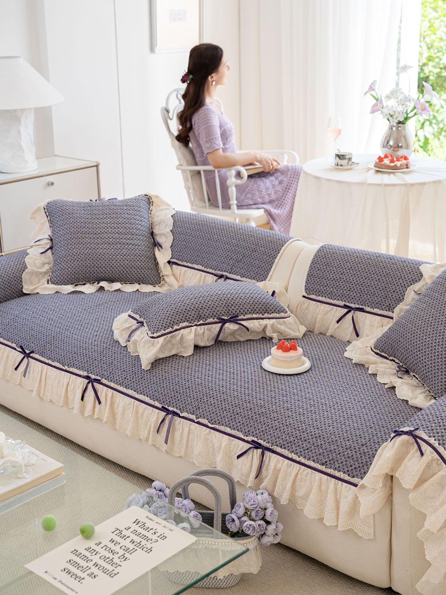 Cojín de sofá con lazo estilo coreano de color sólido 2025 nuevo universal para las cuatro estaciones de lujo ligero de alta gama para sala de estar funda/almohadilla para sofá