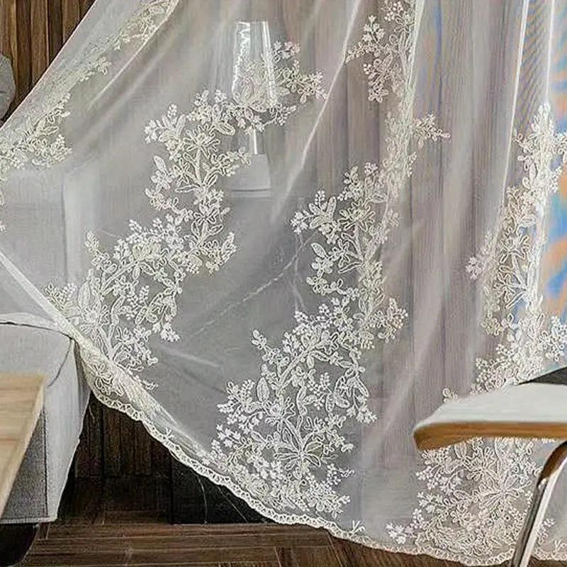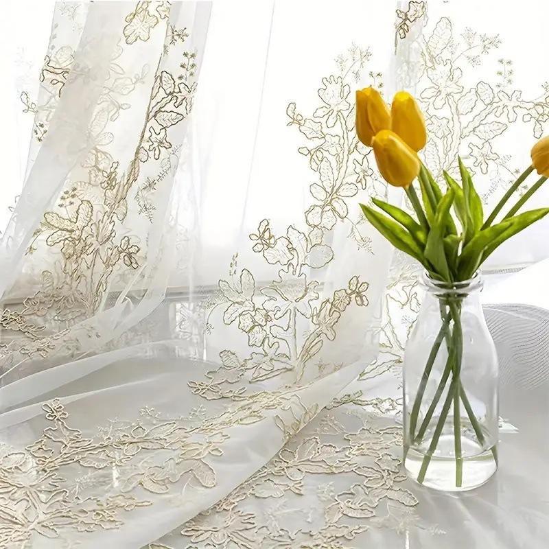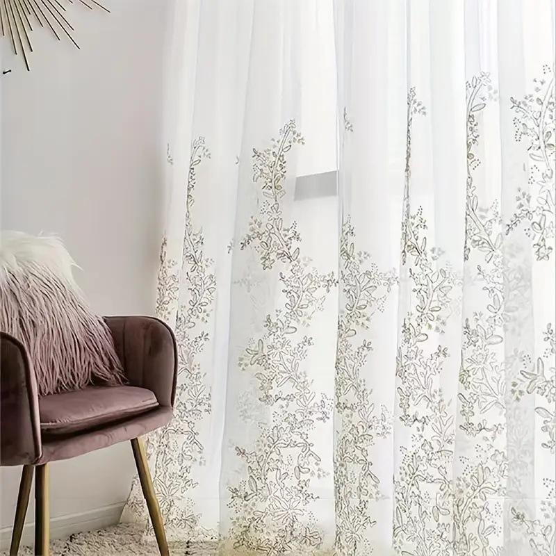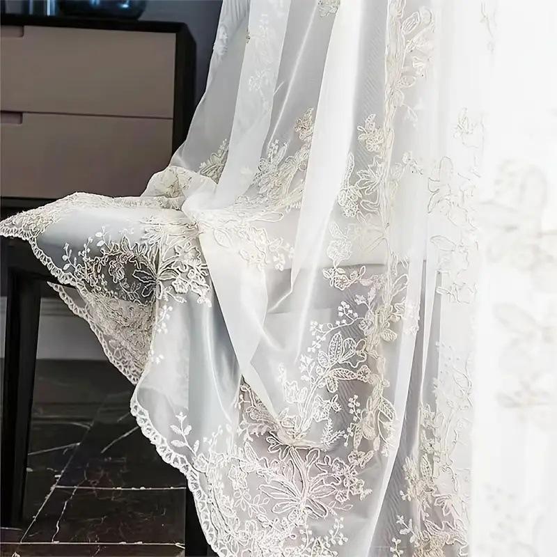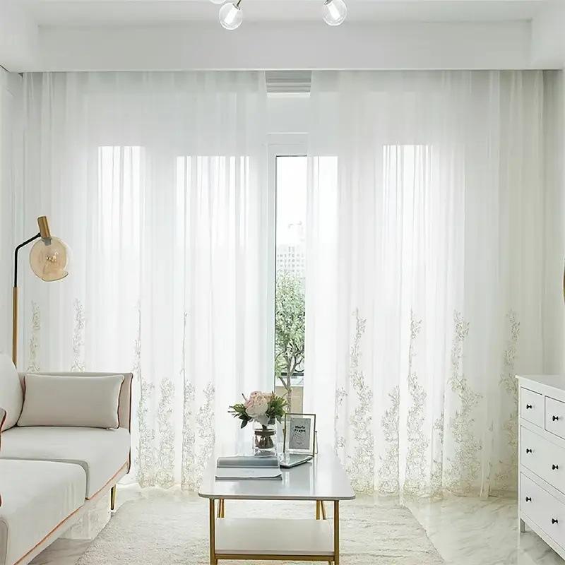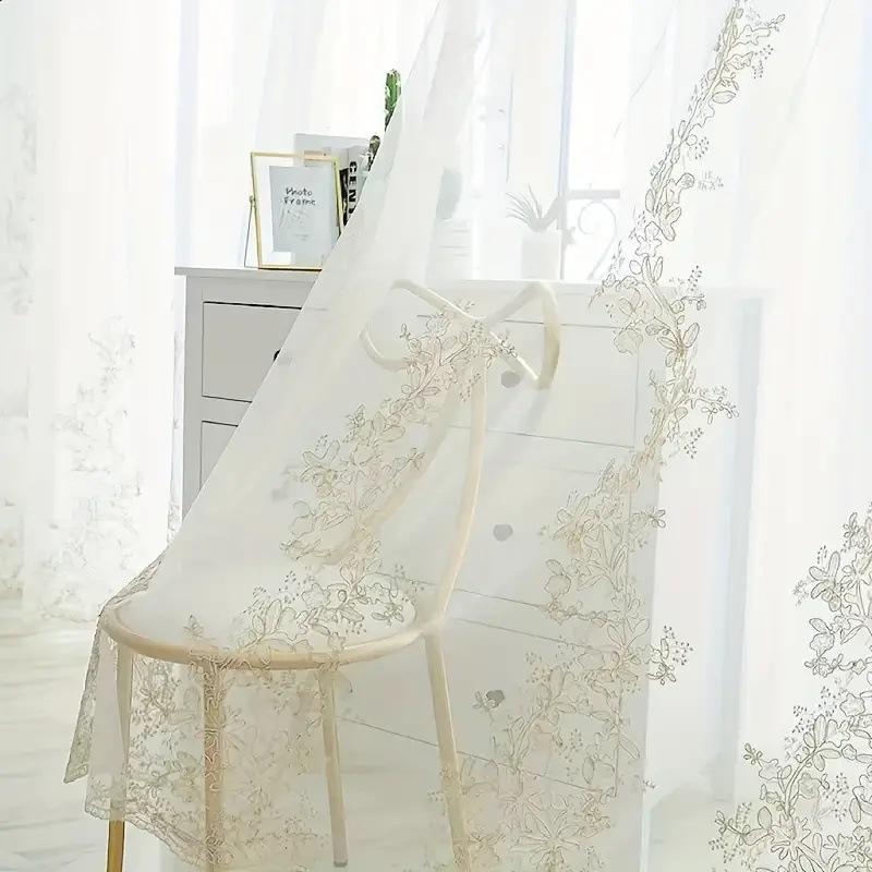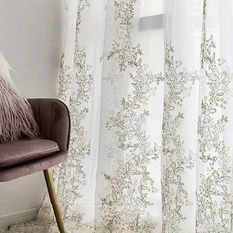 1 pieza Cortina de bordado nueva Sala de estar Dormitorio Decoración Cortinas Decoración individual Bolsillo para barra Ventana Transparente