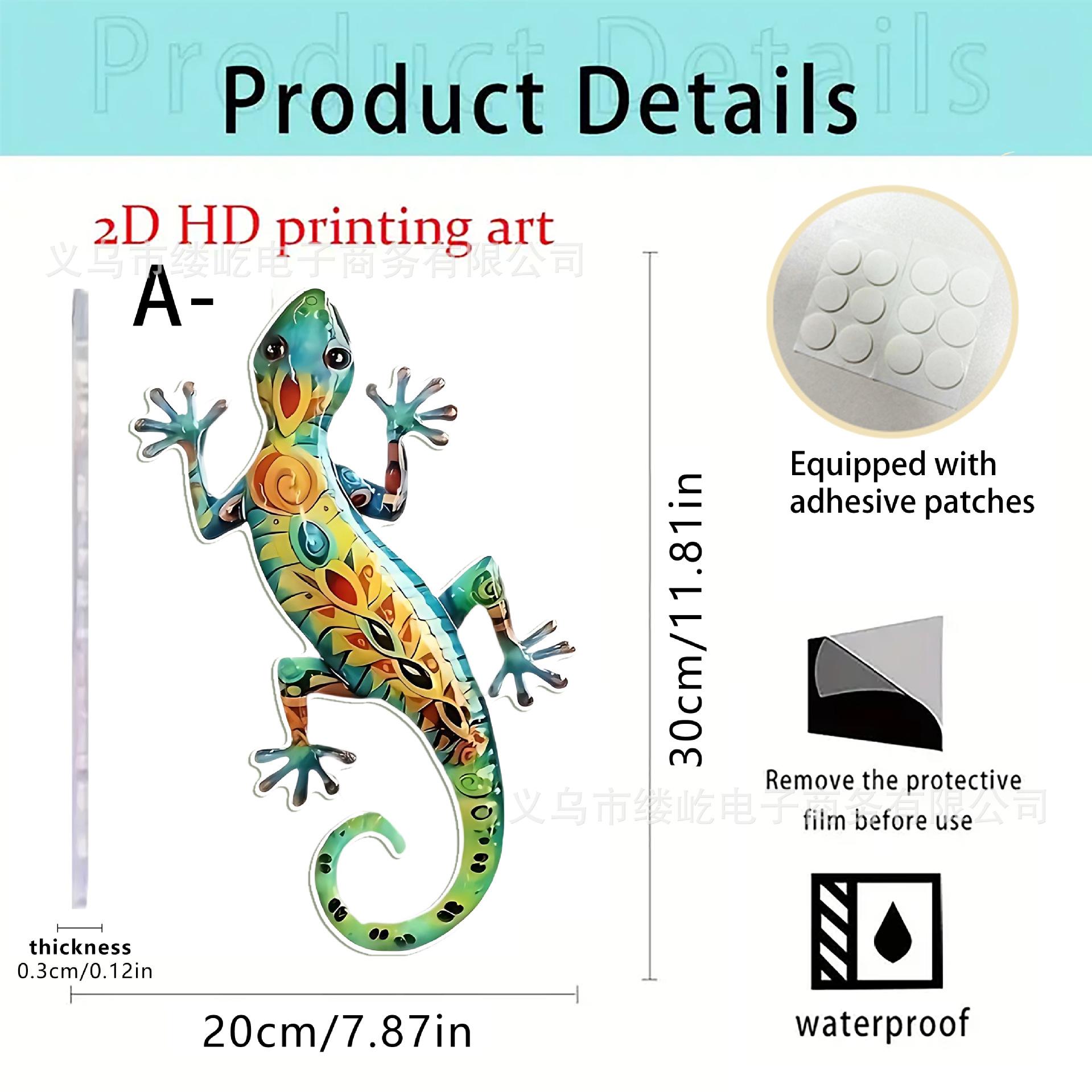 Nuevo Acrílico Plano 2D Transfronterizo Gecko Lagarto Decoración de Pared Jardín Interior Exterior Balcón Valla