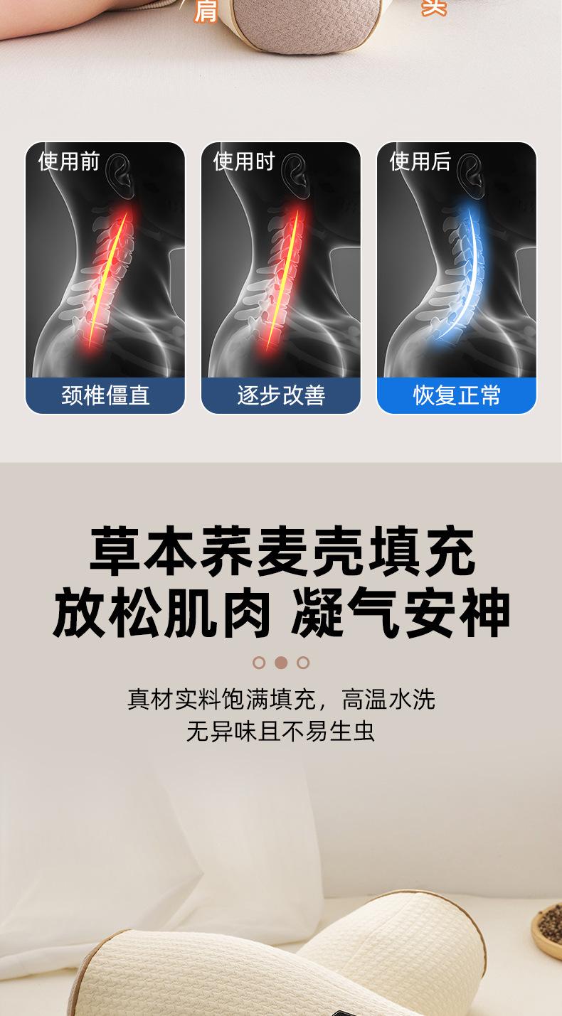 Almohada de Trigo Sarraceno Tipo Protector de Cuello a Núcleo de Almohada de Cáscara de Trigo Sarraceno Almohada Lumbar para Adultos Removible y Lavable Almohada para la Salud Almohada de Tracción para la Columna Cervical