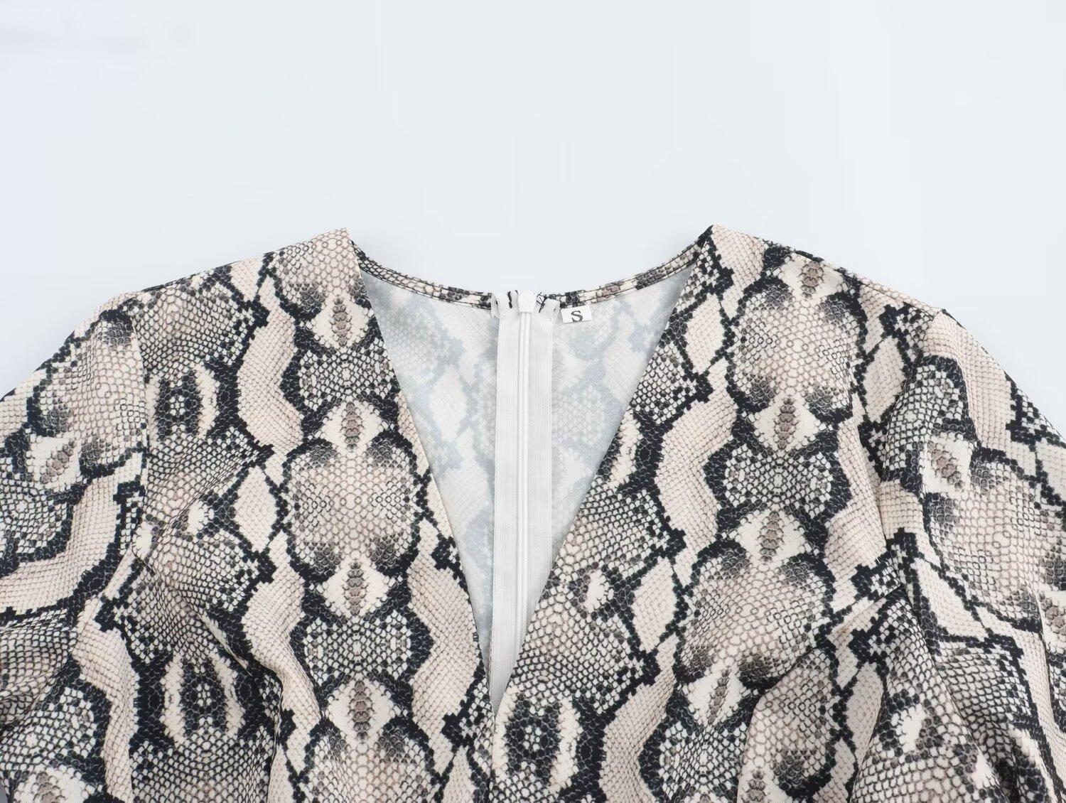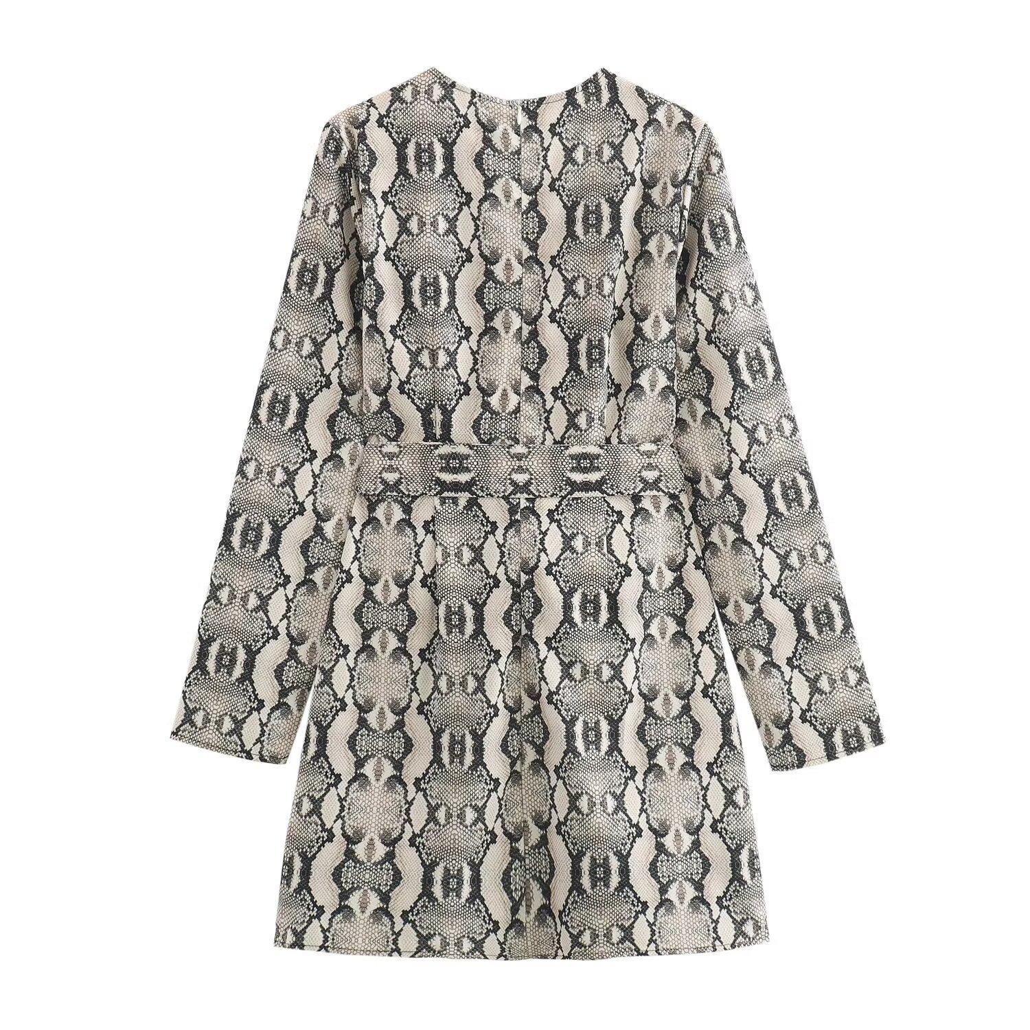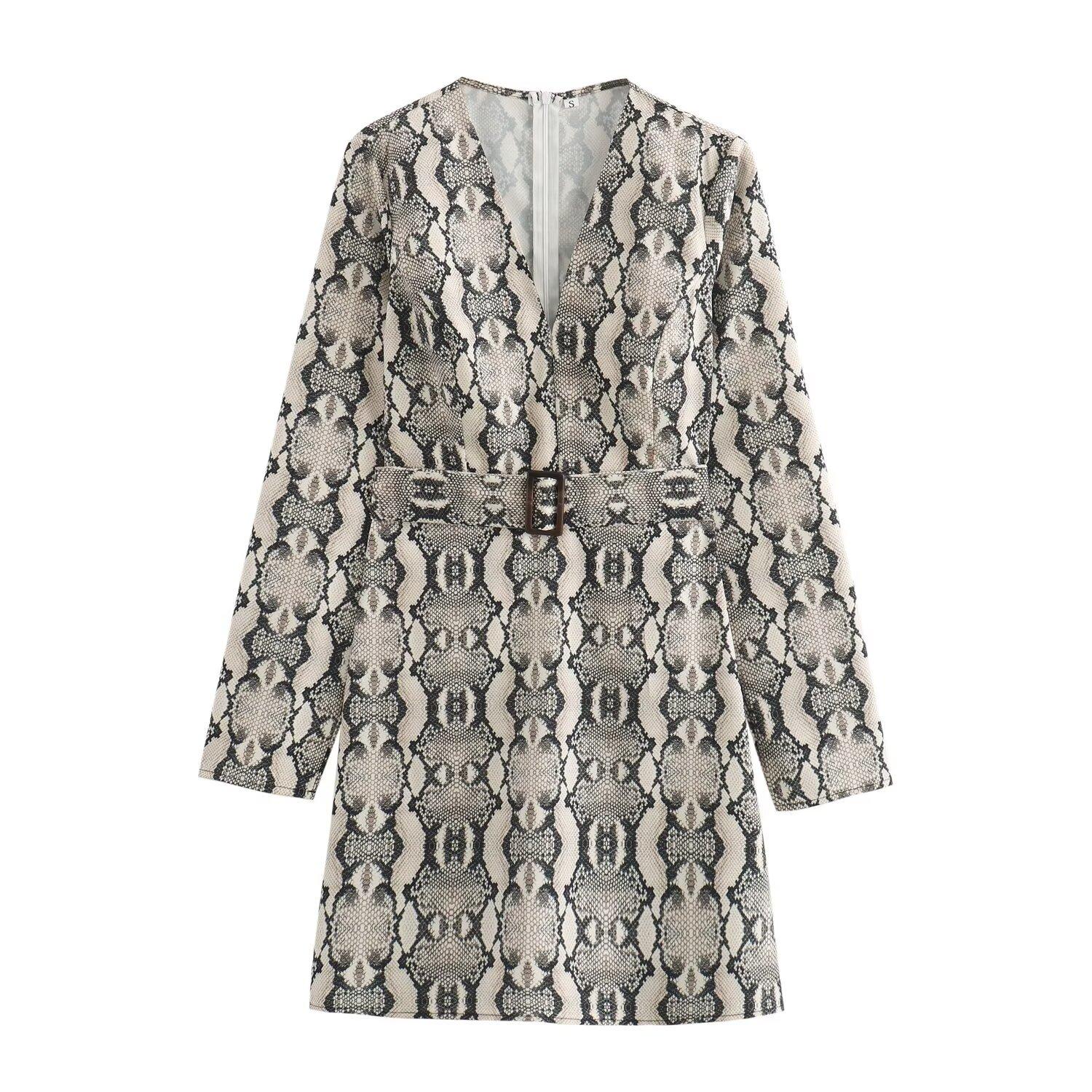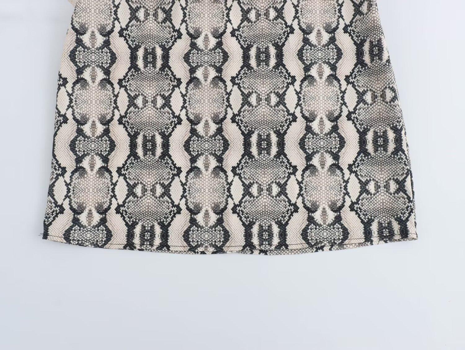 Venta al por mayor 2024 verano nuevo estilo europeo y americano para mujer vestido de cadera con cuello en V y cintura estampada de serpiente