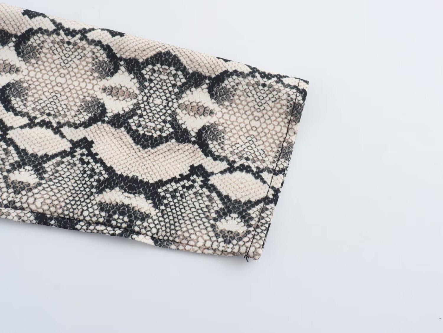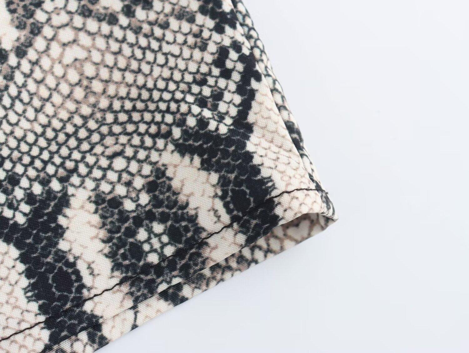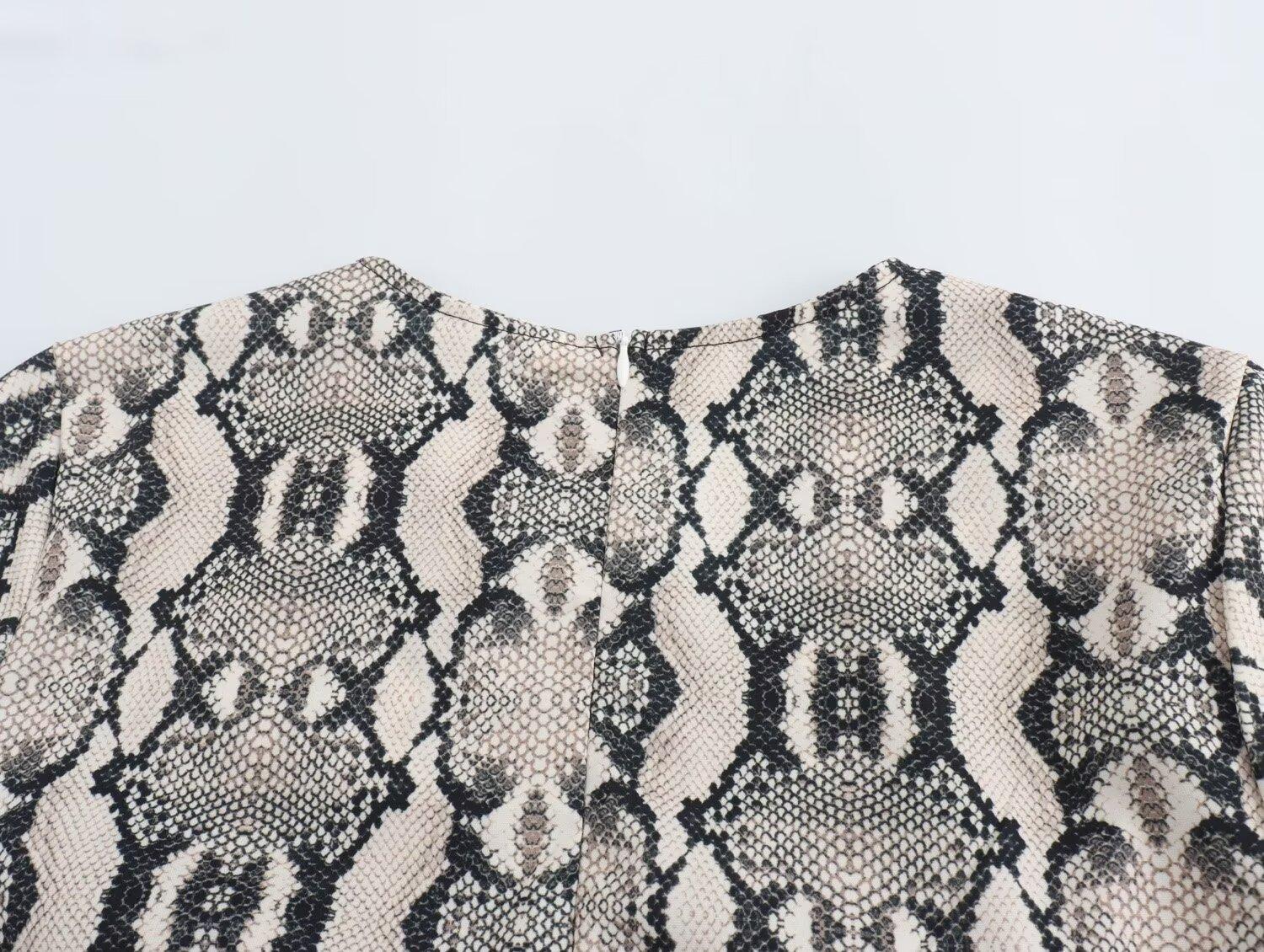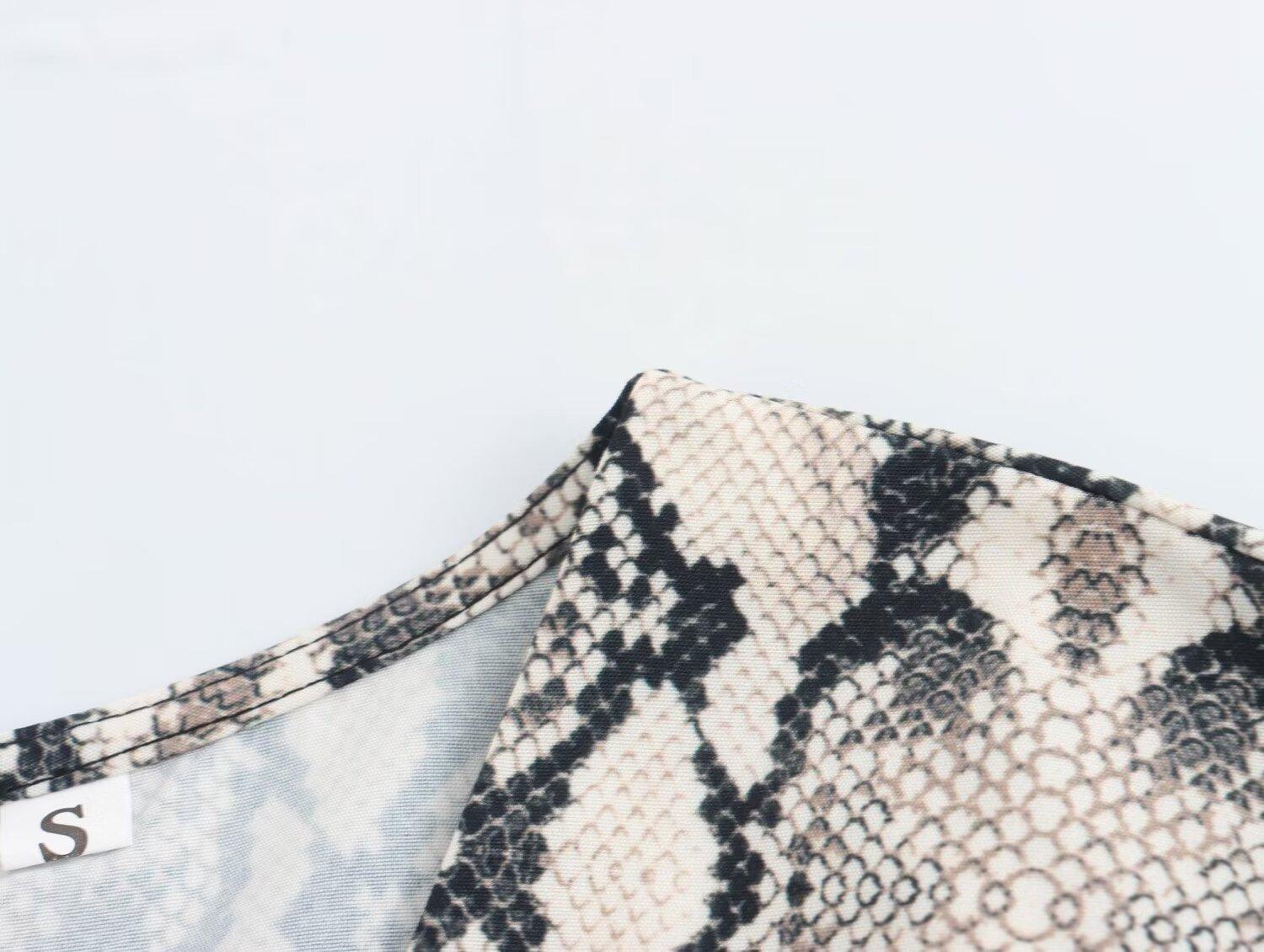 Venta al por mayor 2024 verano nuevo estilo europeo y americano para mujer vestido de cadera con cuello en V y cintura estampada de serpiente