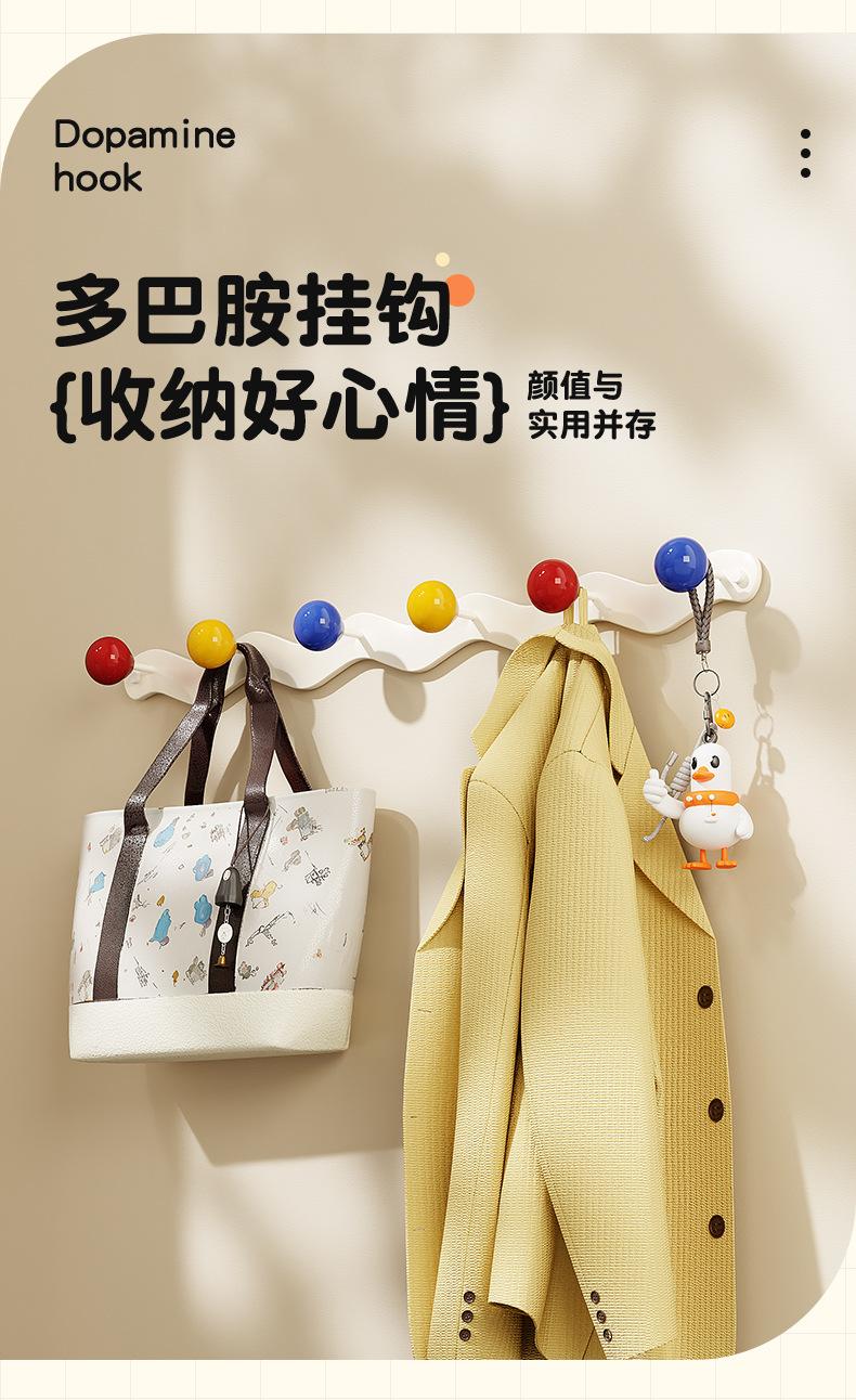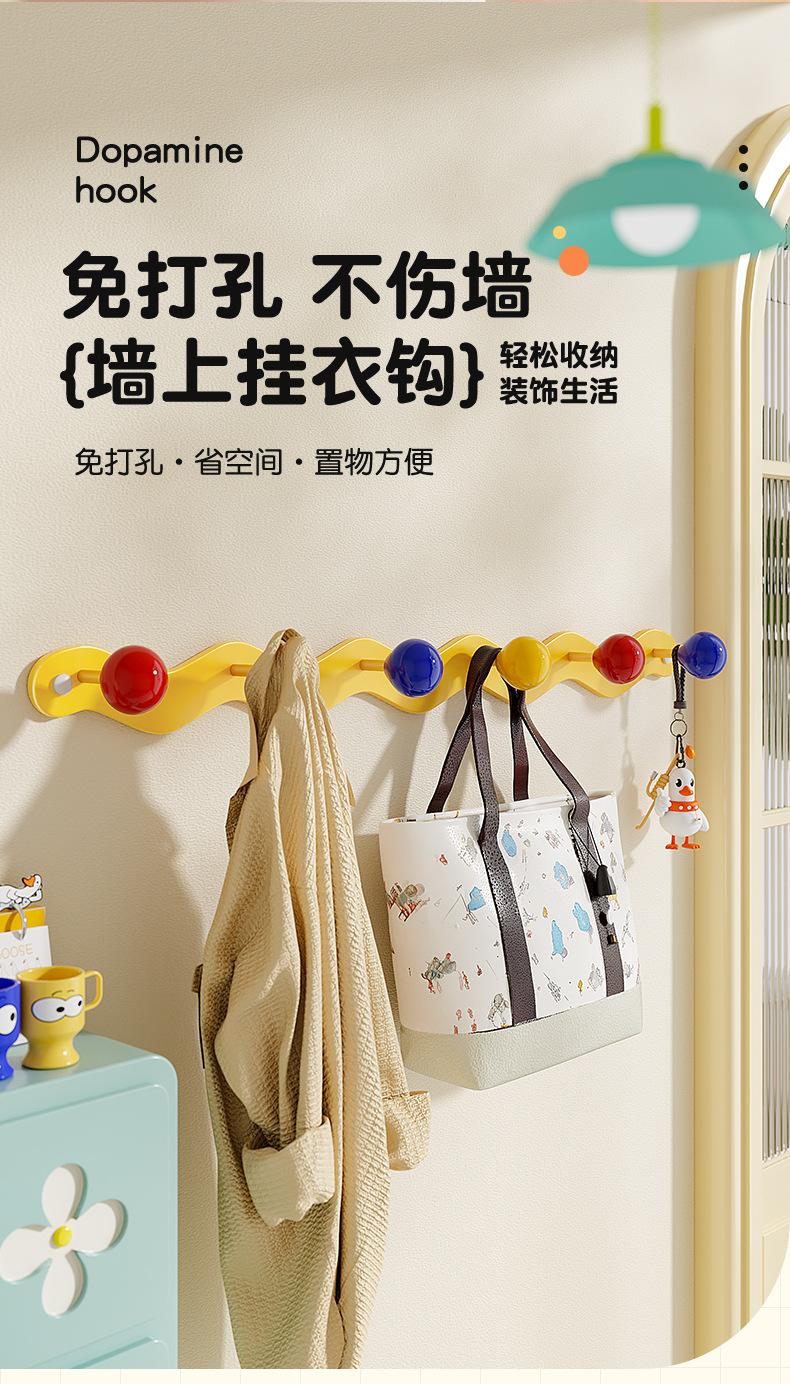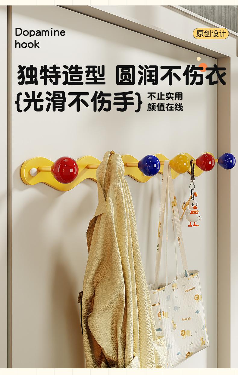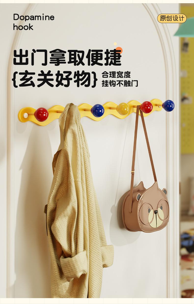 Ganchos Creativos para Ropa de Entrada Sin Perforación Dopamina Montados en la Pared de una Sola Fila Ganchos para Abrigos Montados en la Pared de una Sola Fila para Dormitorio