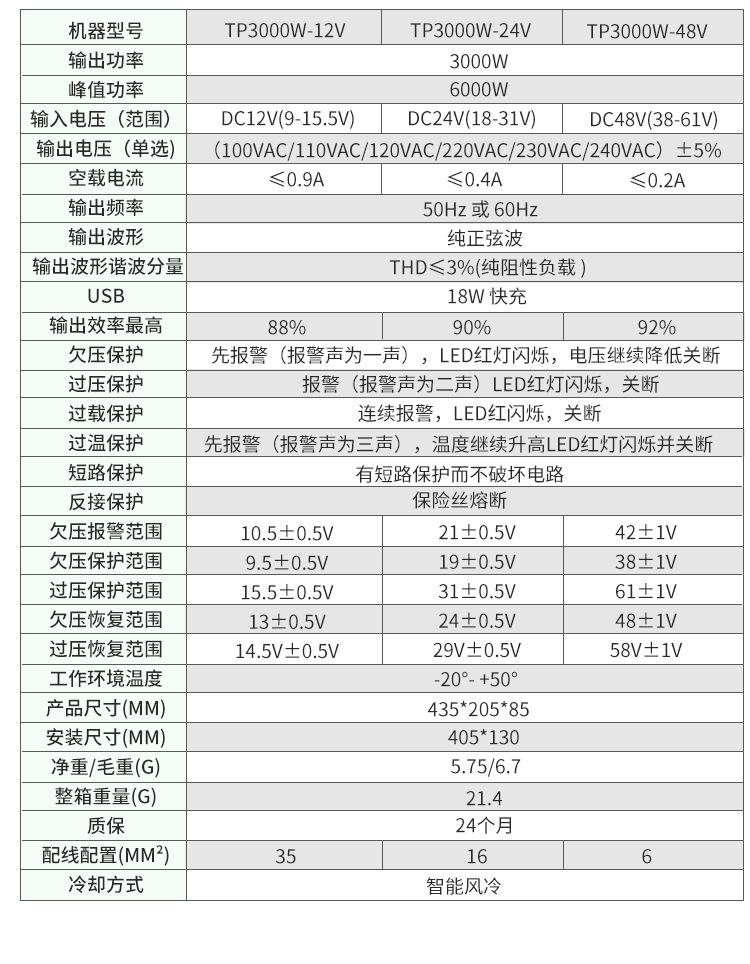 3000w/12V/220V, 3000w/12V/110V, 3000W/24V/220V, 3000W/24V/110V
