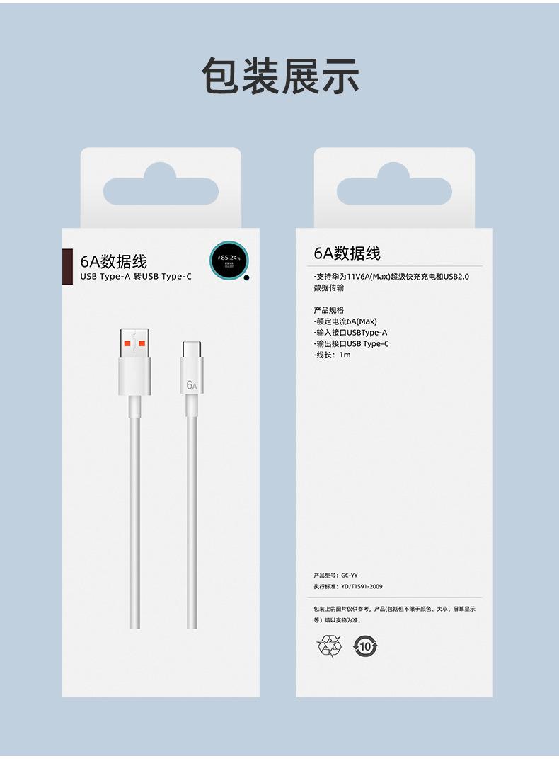Cable de datos para teléfono móvil Tipo-C de carga súper rápida 6A Adecuado para USB Android Huawei Cable de carga de 66 W Cable de datos Apple