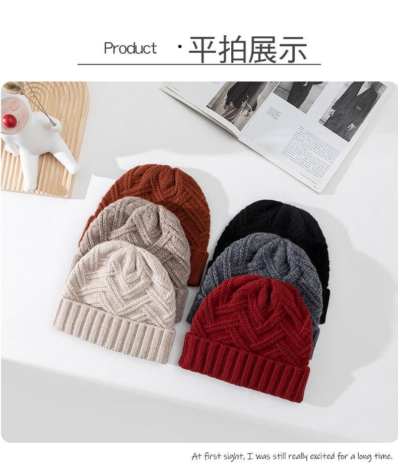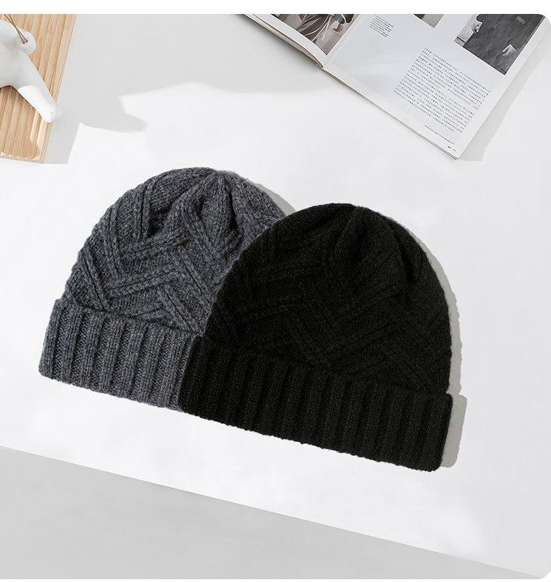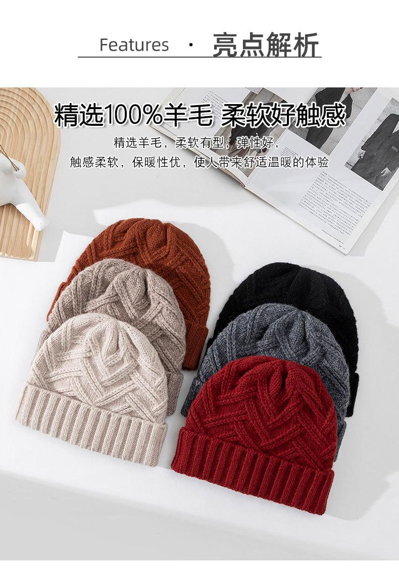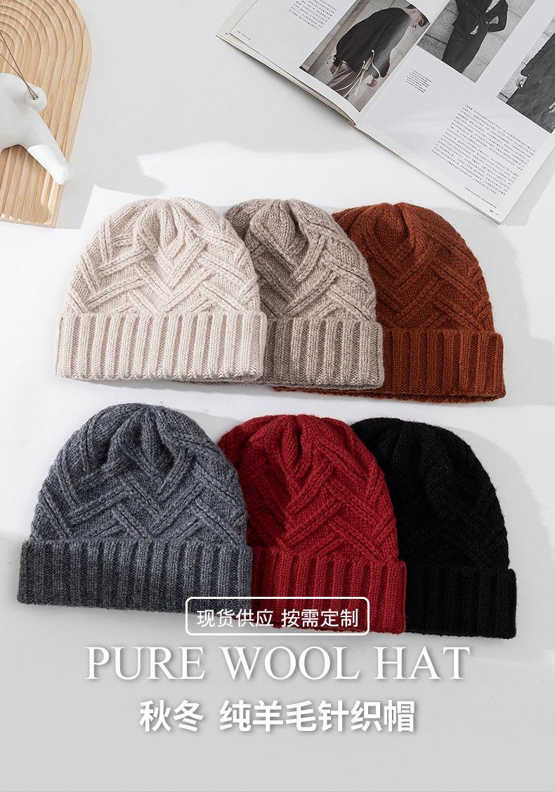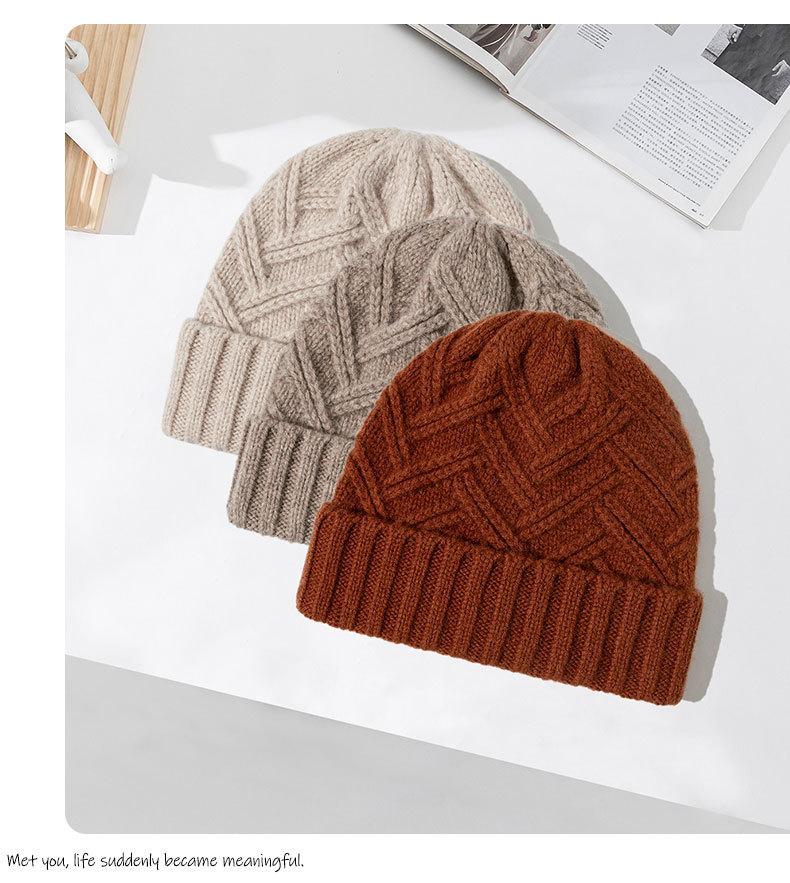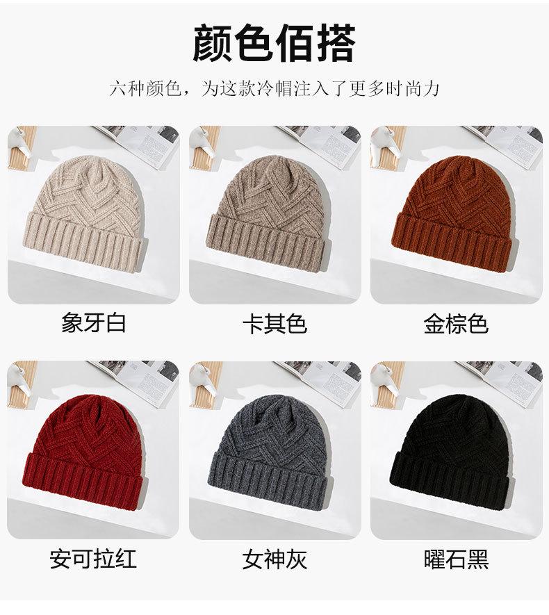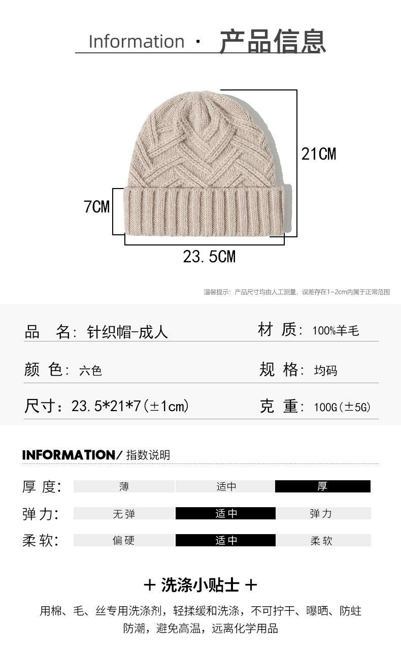 Gorro de Punto 100% Lana Estilo Coreano Grueso Otoño e Invierno Gorro para el Frío Gorro de Lana Cálido para Hombre y Mujer Moda Simple Combinable Color Sólido