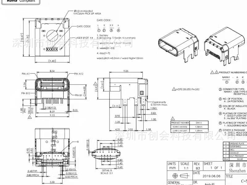 TYPE-C base/plate pad type DIP + SMT CH = 4.0mm center height 5. 8MM 24pin double shell