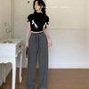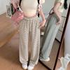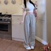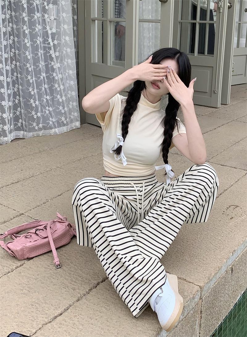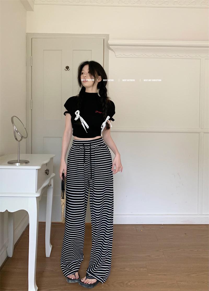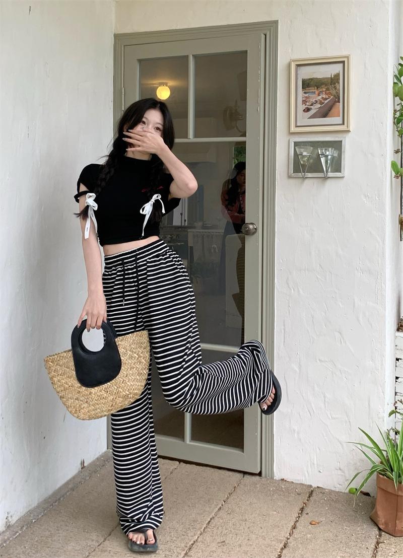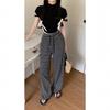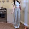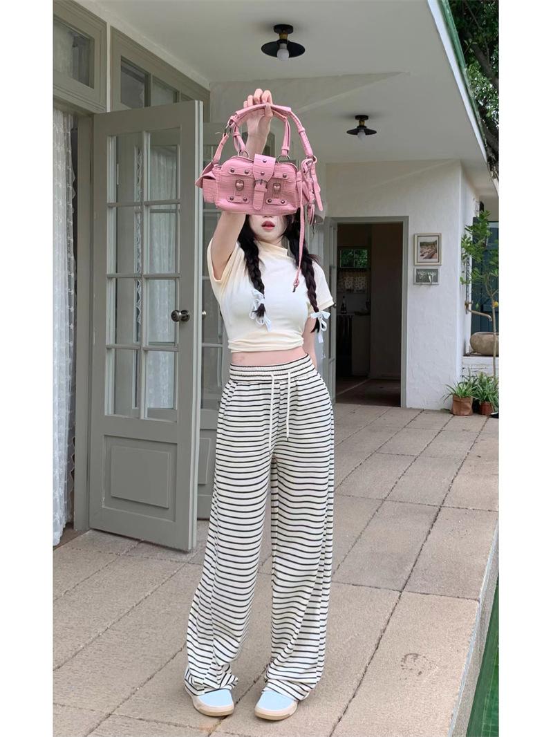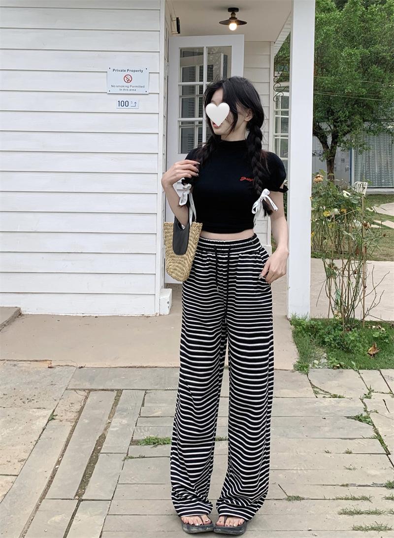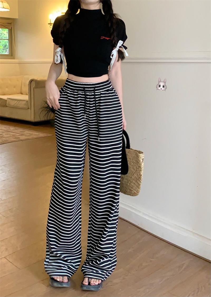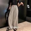 Pantalones casuales drapeados a rayas blancas y negras para mujer, otoño, pierna recta, pantalones largos, estilo holgazán, cintura elástica, sueltos, pierna ancha, pantalones para caminar