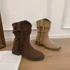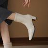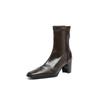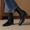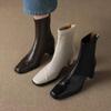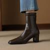 Botas Martin de tacón alto de otoño e invierno, color sólido, versátiles, de tacón grueso, para mujer, punta cuadrada, talla grande, botas de cuero, suela de goma nueva, botas de media caña