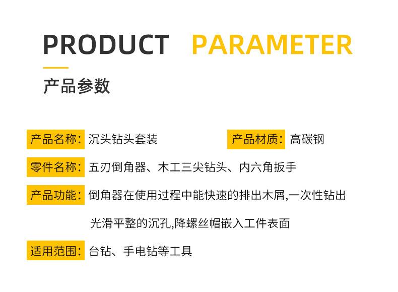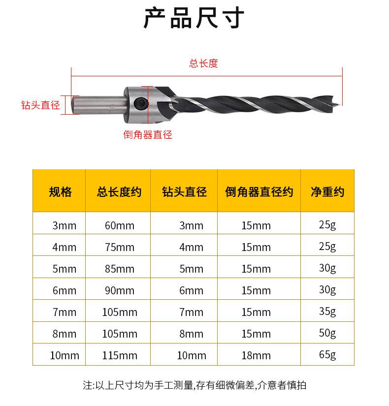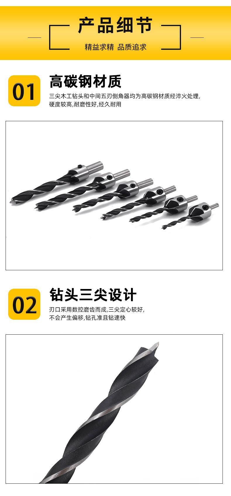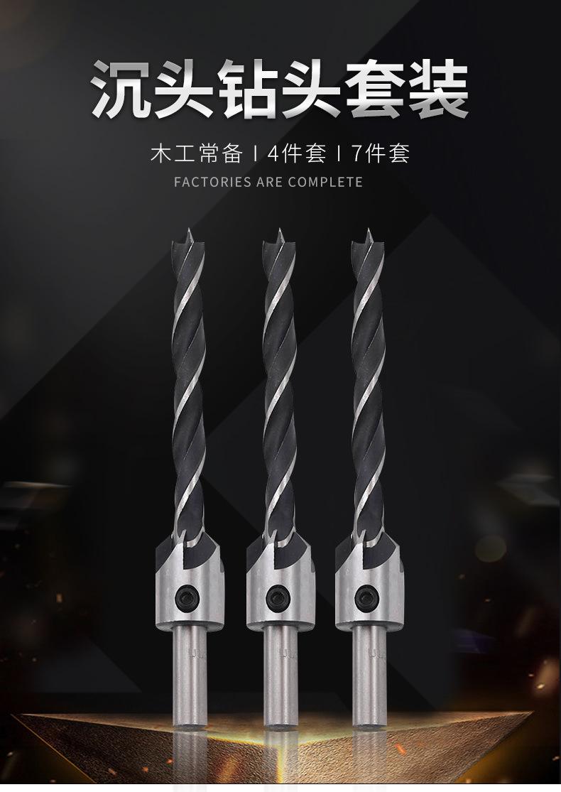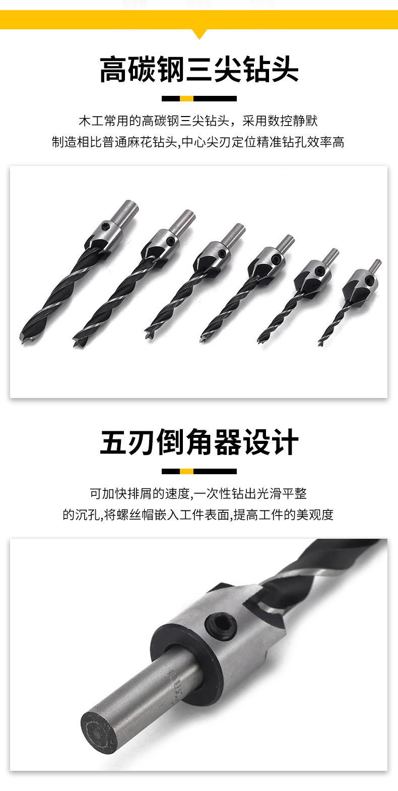 Broca Avellanada de Tres Puntos Personalizada para Carpintería, Broca Escariadora, Broca Guía Avellanadora para Carpintería 3-10 mm, Acero de Alta Velocidad