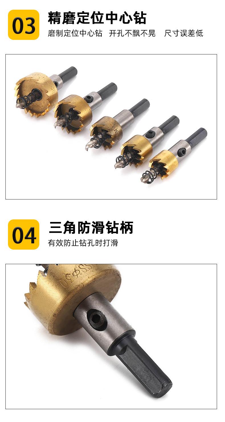Abridor de agujeros de acero rápido de 5 piezas escariado de chapa metálica 16-30 mm abridor de agujeros chapado en titanio traje abridor de agujeros de acero inoxidable