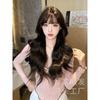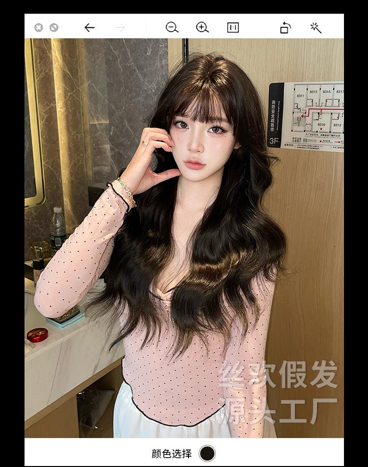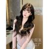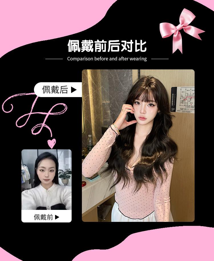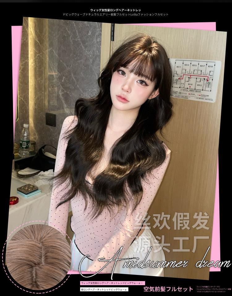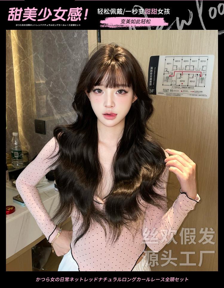 Peluca Feliz de Seda para Mujer Cabello Largo Cubierta Completa de Cabeza Simulación Natural Flequillo de Aire Medio Largo Largo Peluca Rizada