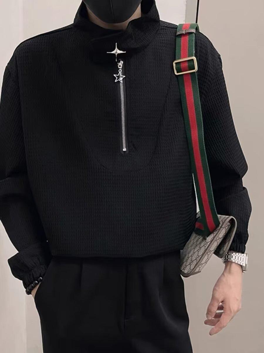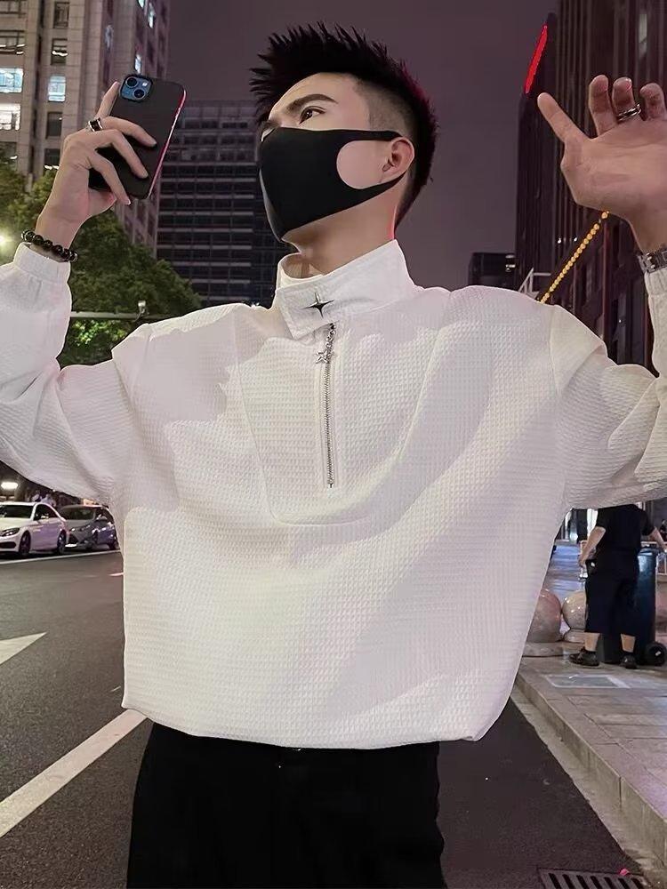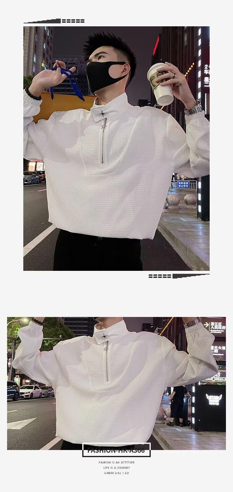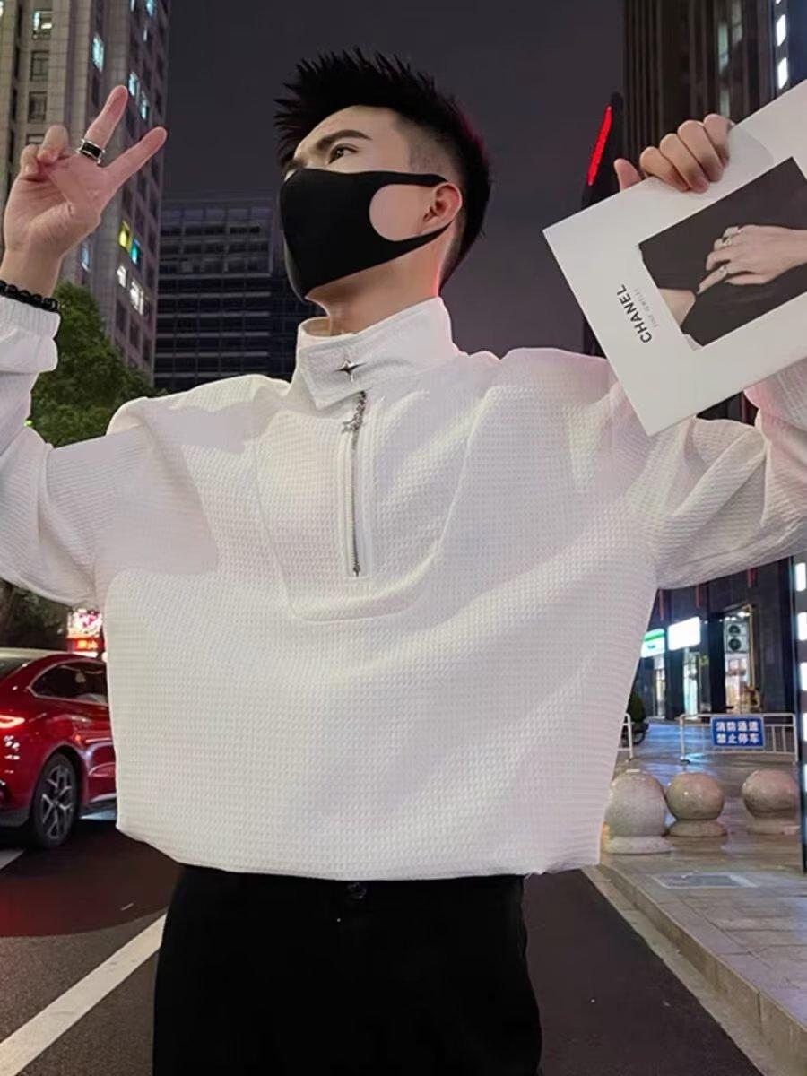 Suéter de media cremallera para hombre otoño japonés retro medio cuello alto holgado casual chaqueta deportiva top moderno ropa