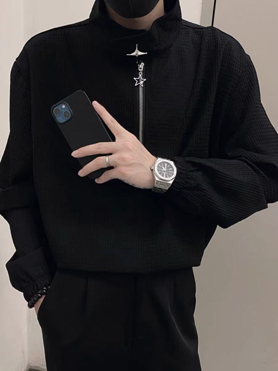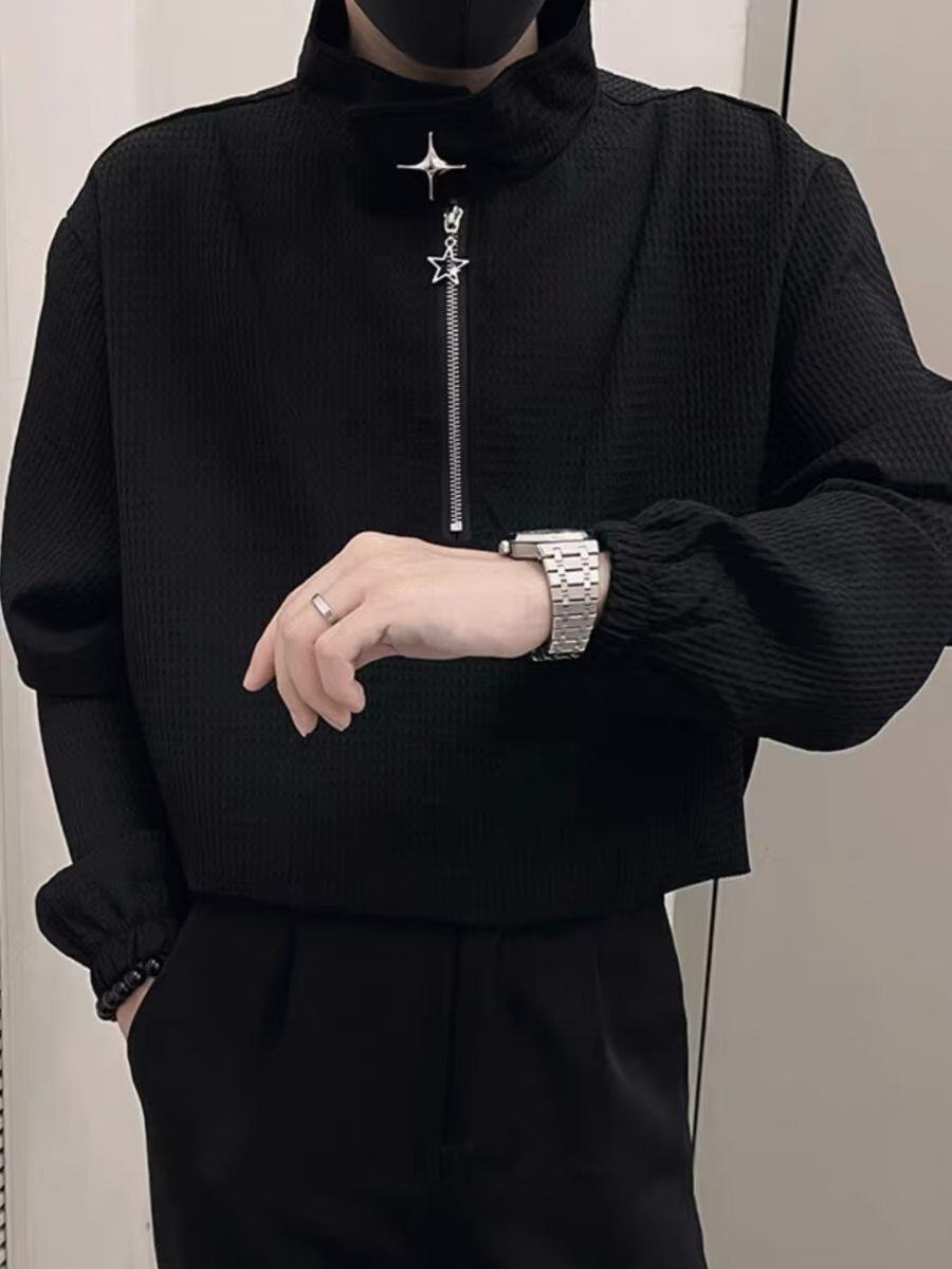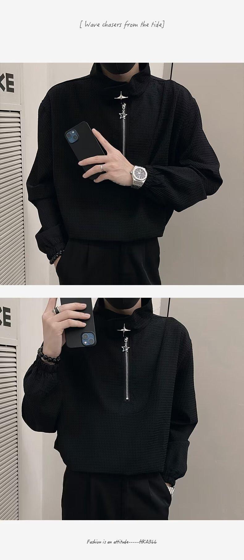 Suéter de media cremallera para hombre otoño japonés retro medio cuello alto holgado casual chaqueta deportiva top moderno ropa