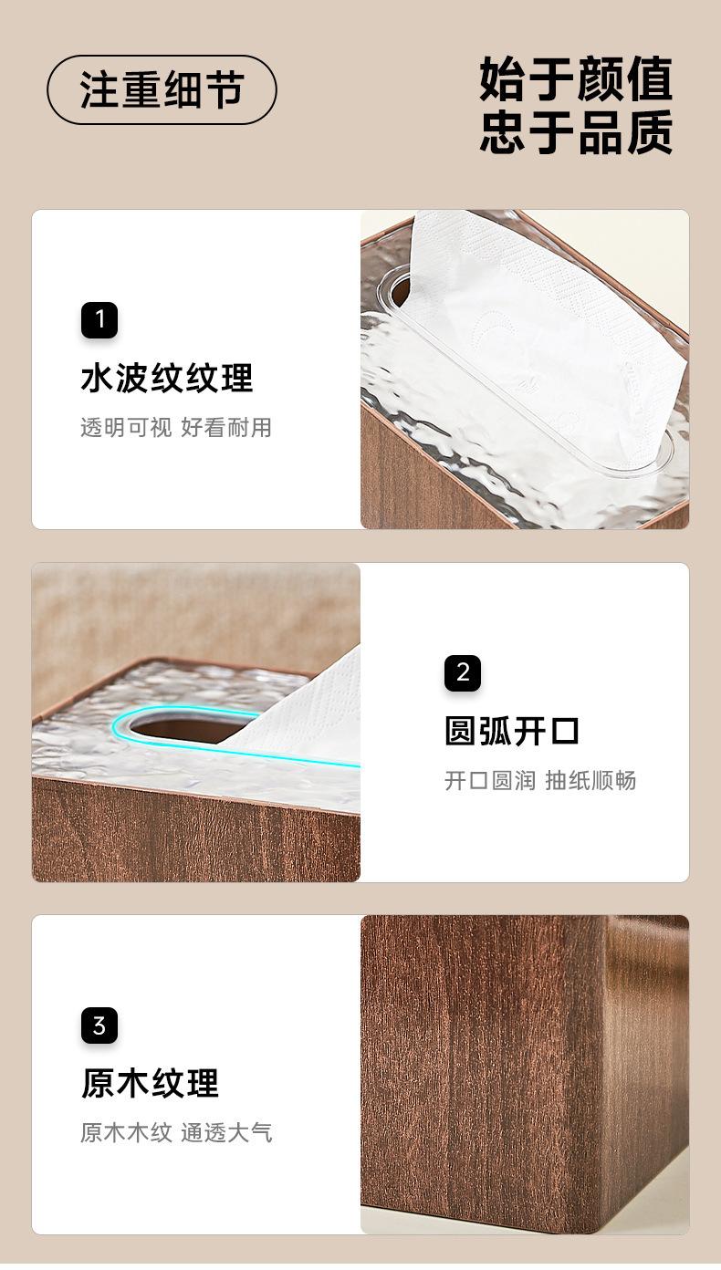 Caja de pañuelos con grano de madera de nogal estilo retro, para el hogar, sala de estar, mesa de centro, escritorio, caja de toallas de papel, adornos creativos de personalidad de alta gama