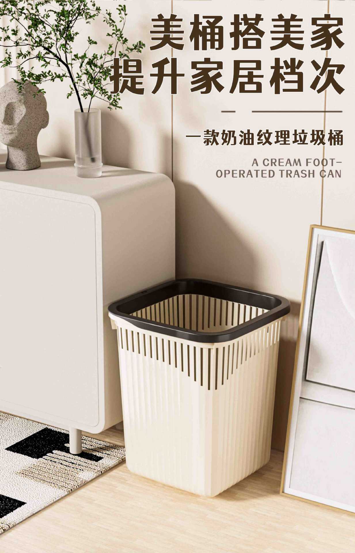 Bote de Basura Hogar Inodoro Alto Valor de Color Estilo Crema ISN Cocina Recámara Baño Tamaño Grande Bote de Basura sin Tapa