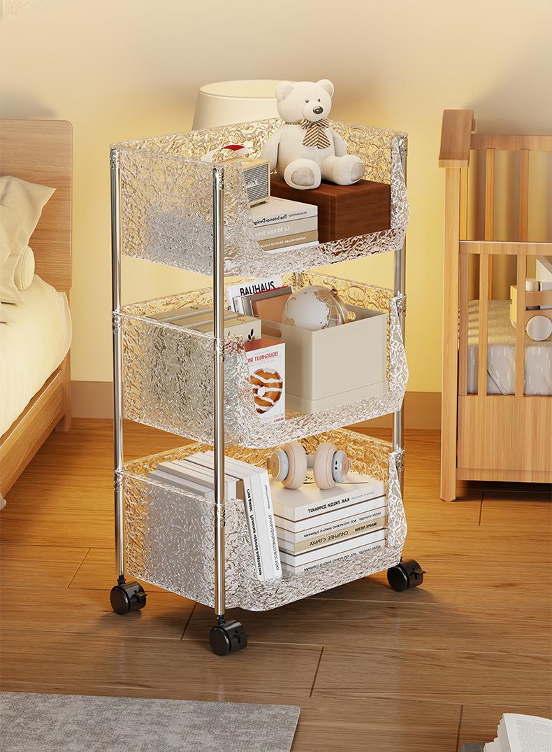 Estante de almacenamiento pequeño con ruedas, snacks, piso, multicapa, mueble de almacenamiento para sala de estar, estante para mochilas, estantería móvil, estantes de almacenamiento organizadores